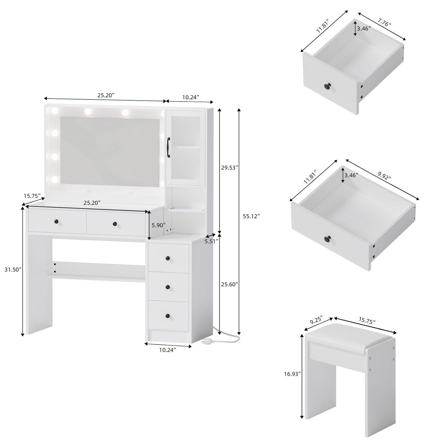 - 【Sturdy & Easy Assembly】The makeup vanity is made of strong engineered wood and sturdy construction to ensure its strength and durability. And it's packaging comes with detailed instructions, all required components have assembly number labels and all components are arranged as expected, making the process efficient, hassle-free and easy to assemble. The overall size : 35.4(W)*15.7(D)*55.1(H)in.