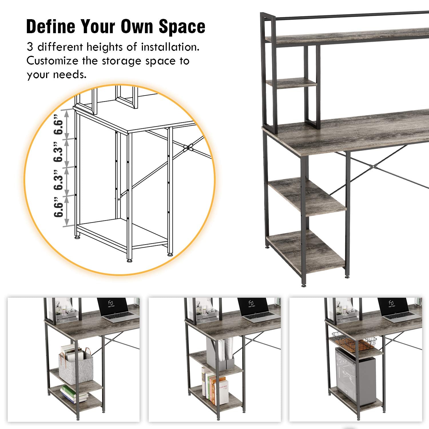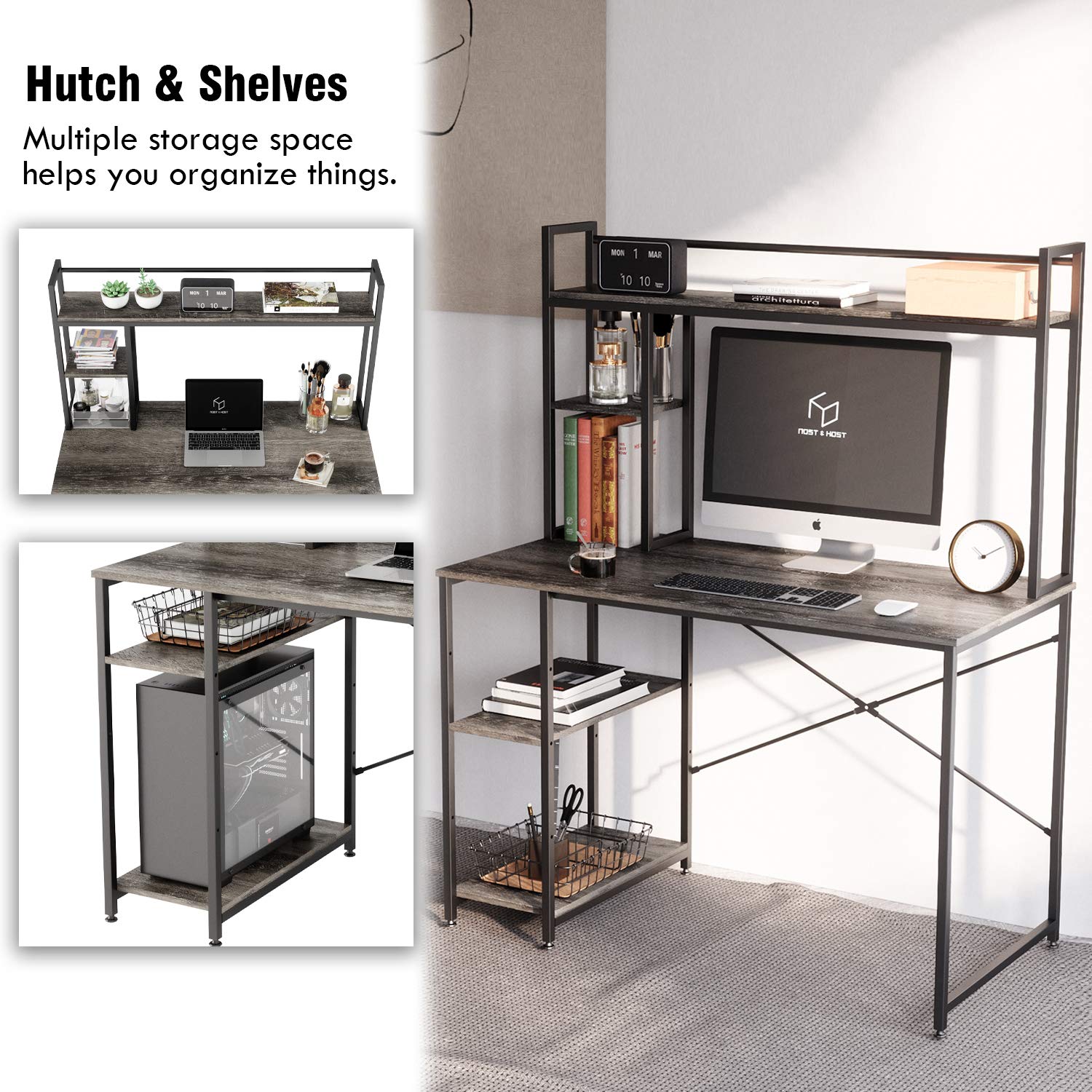 Nost & Host Rustic Grey Computer Desk with Hutch and Adjustable Shelves for Home Office and Gaming