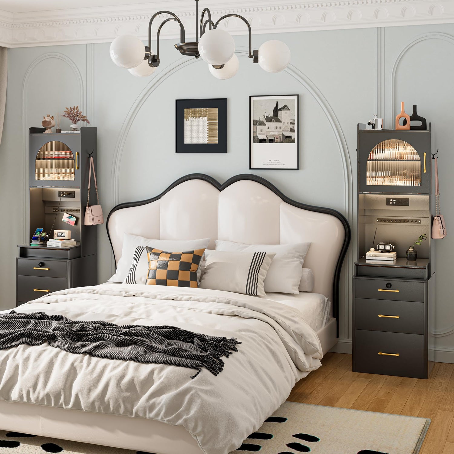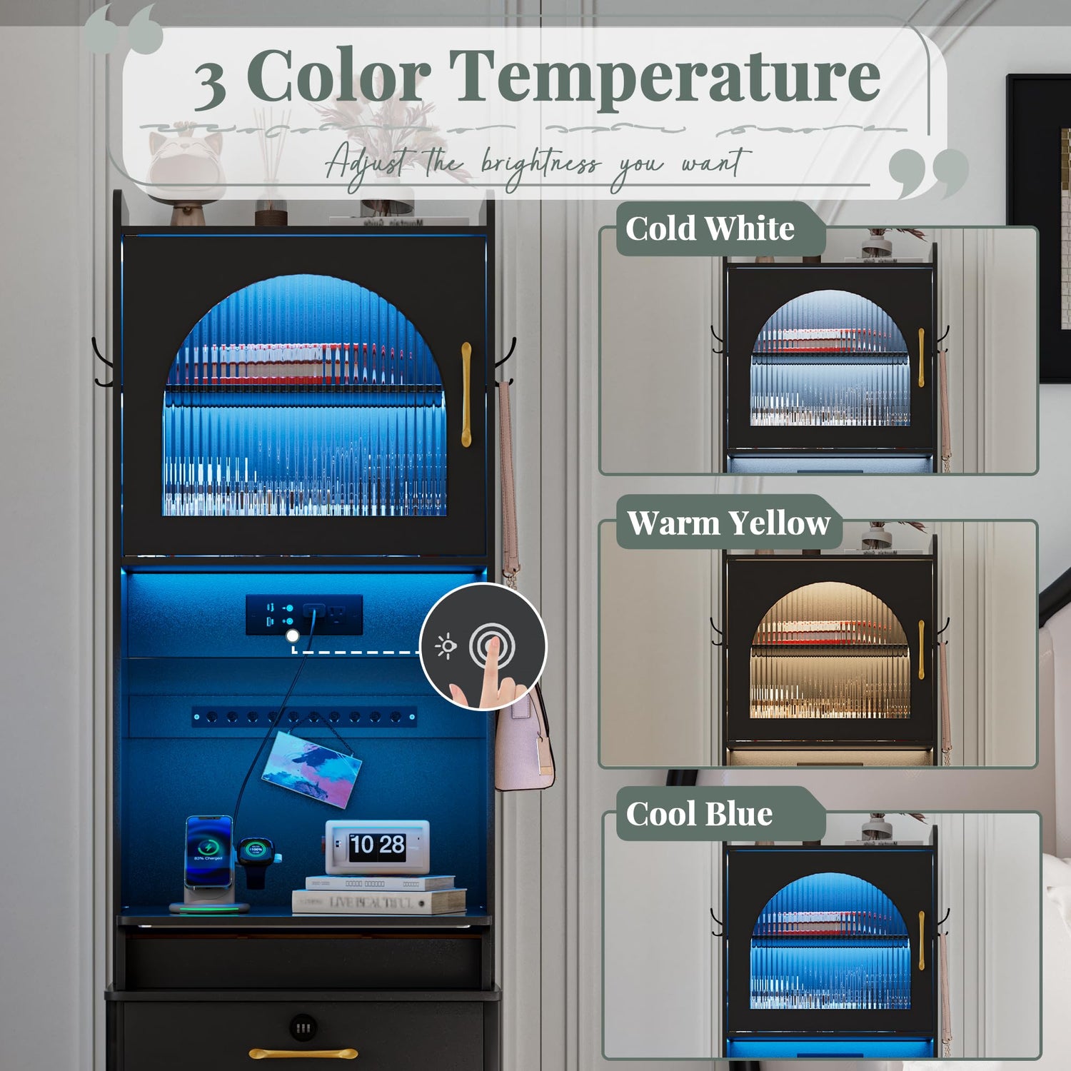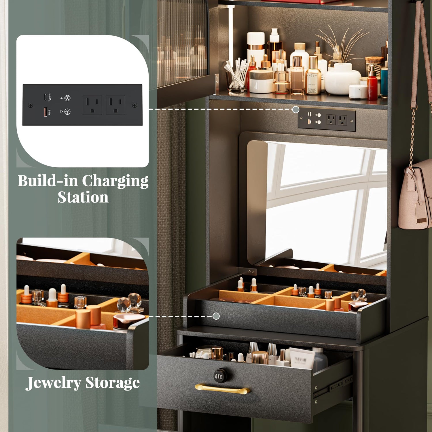 - ❄️【Built-in charging station with hair tool and accessory holders】Stay connected and organised with the built-in charging station, which includes standard electrical outlets and a USB port to power your hairdryer, phone or other devices. Thoughtful additions like a hairdryer holder, makeup brush organiser and coat hook on the side panel keep your essentials within easy reach.