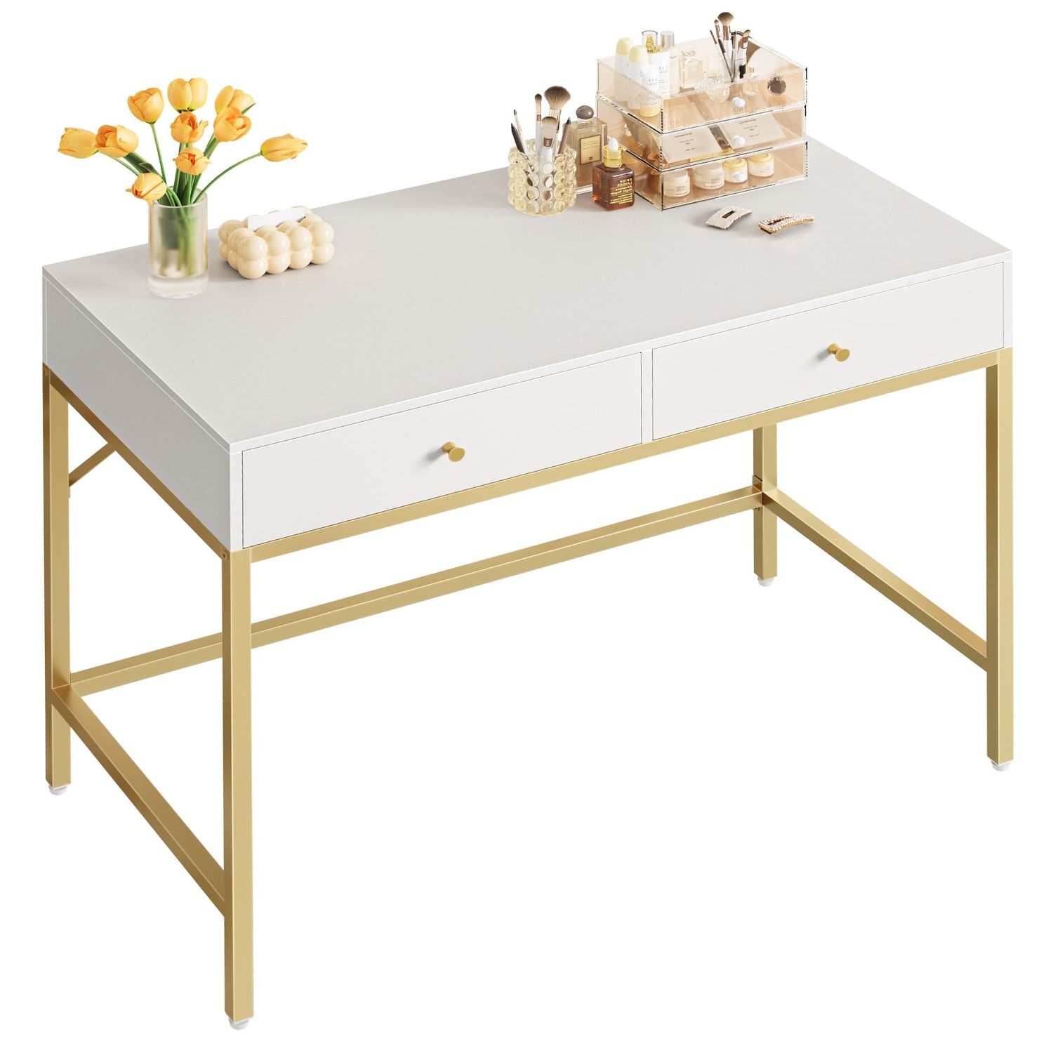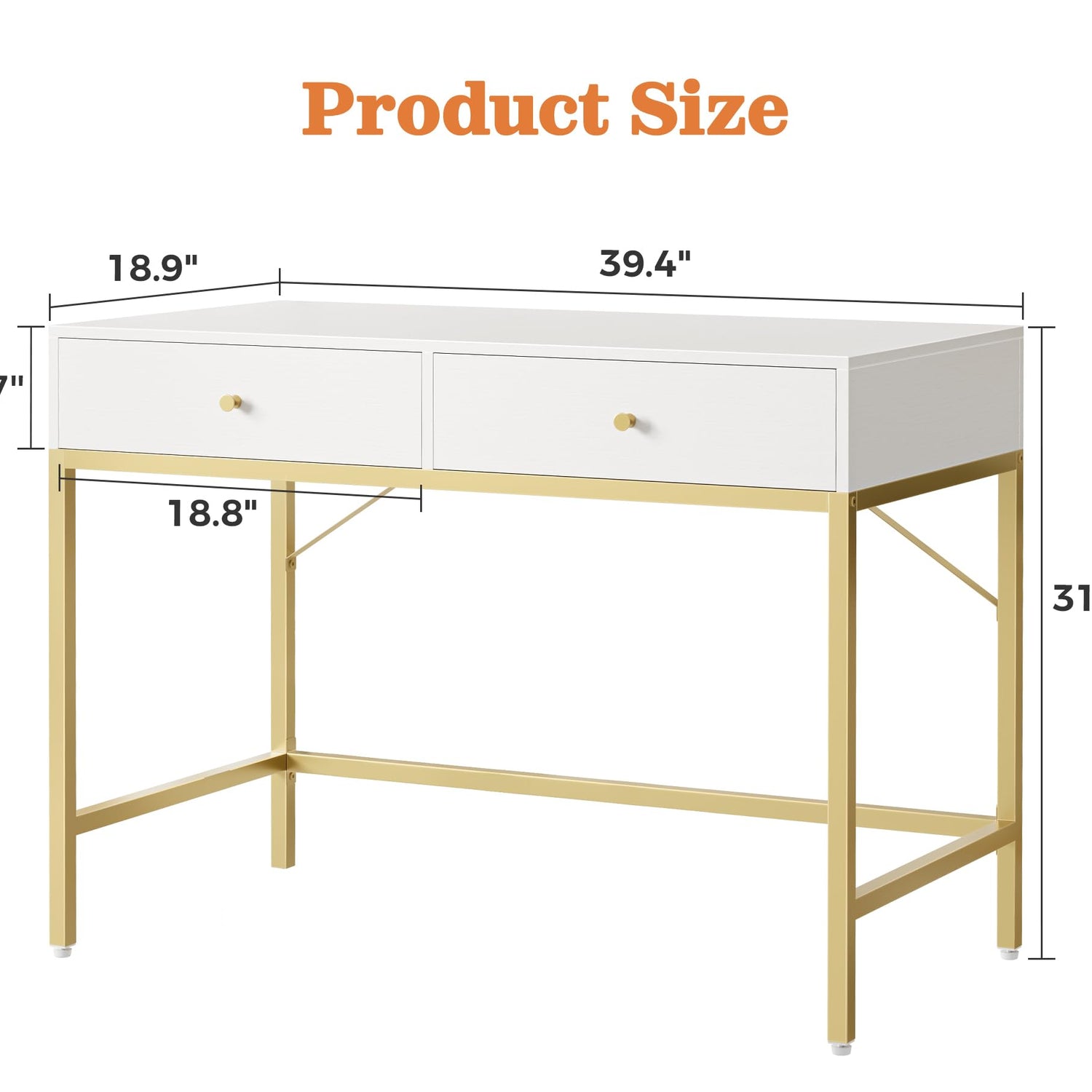 SUPERJARE 39.4" White and Gold Desk with 2 Drawers, Modern Makeup Vanity Desk, Small Computer Desk Home Office Desk for Writing Study Bedroom