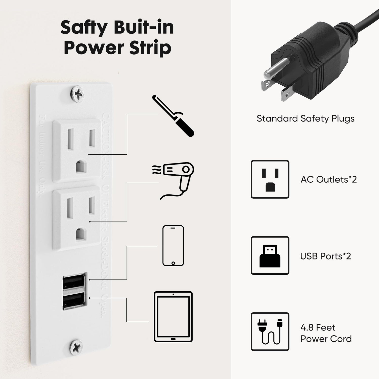 • Convenient Charging: Equipped with 2 sockets and 2 USB ports, the vanity table allows you to charge your phone or other electronic devices easily. The power cord is 145cm long, providing added convenience.
