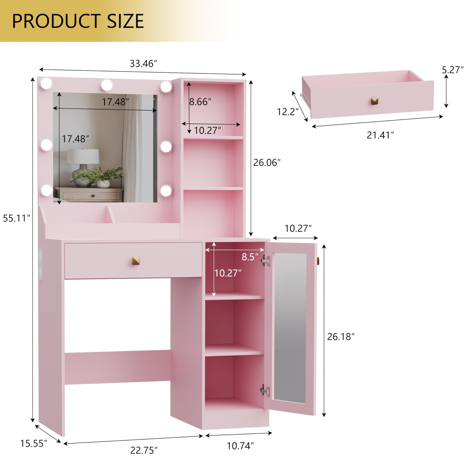 • Convenient Built-in Charging Station: Designed for modern living, this vanity desk with mirror and lights includes 2 standard plug sockets, 2 USB ports. It’s the ultimate small vanity desk for powering your hair tools and charging your devices simultaneously