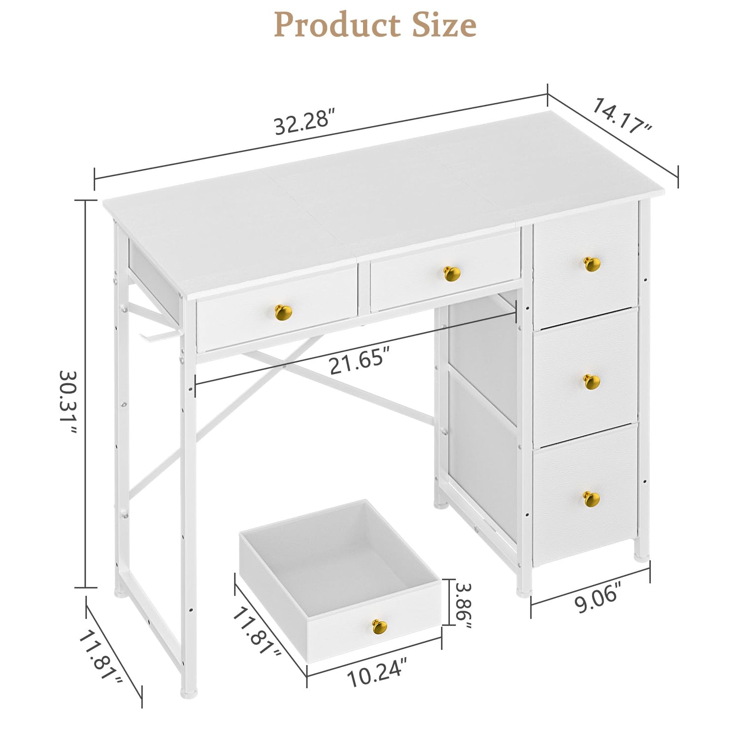 • 【White Desk with Fabric Drawers】Our girls vanity desk is equipped with five fabric drawers where you can conveniently store various small items such as Jewelry, Lipstick, Daily skin care products, and other miscellaneous items. The large vanity drawer measures 7.2x11.14x9.06 inches (WxDxH), providing ample space to store items up to 9 inches tall. Its generous capacity effortlessly organizes all your daily skincare essentials.