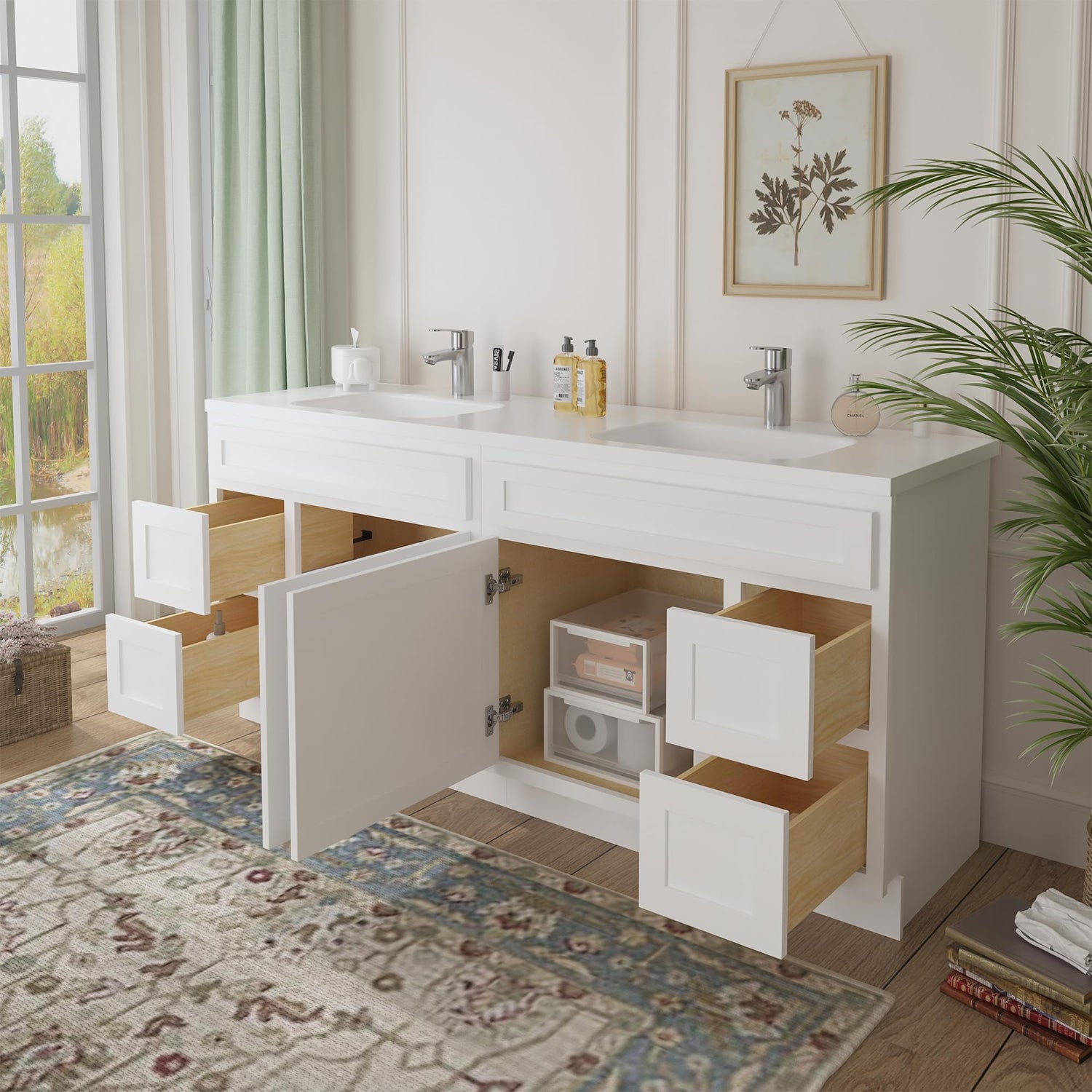 Vanity Art 72 Inch Bathroom Vanity with 2-Door 4-Drawer, Wood Bathroom Vanity Cabinet with Soft Closing Drawer, Floor Mounted White Cabinet Without Top VA4072-LRW