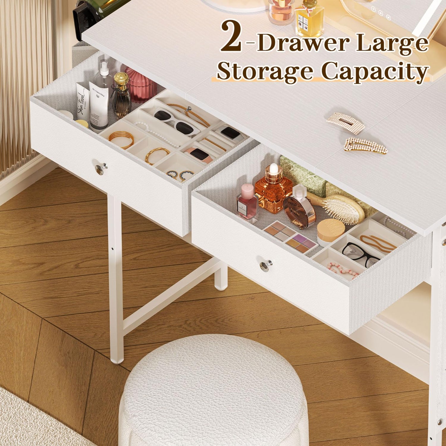 - 【2 Fabric Drawers】Our girls vanity desk is equipped with 2 soft-close fabric drawers where you can conveniently store various small items (jewelry, lipsticks, brushes) , while keeping them dust-free—unlike noisy plastic drawer.