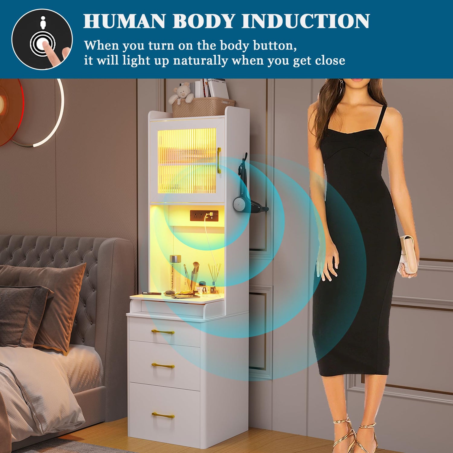 - 💃【Human Sensor Function Light】 This vanity desk with 3 color lights has a human body sensor function switch. When you turn on the human body function, it will automatically light up when you approach it, and it will automatically turn off when you leave. Light color: yellow/blue/white