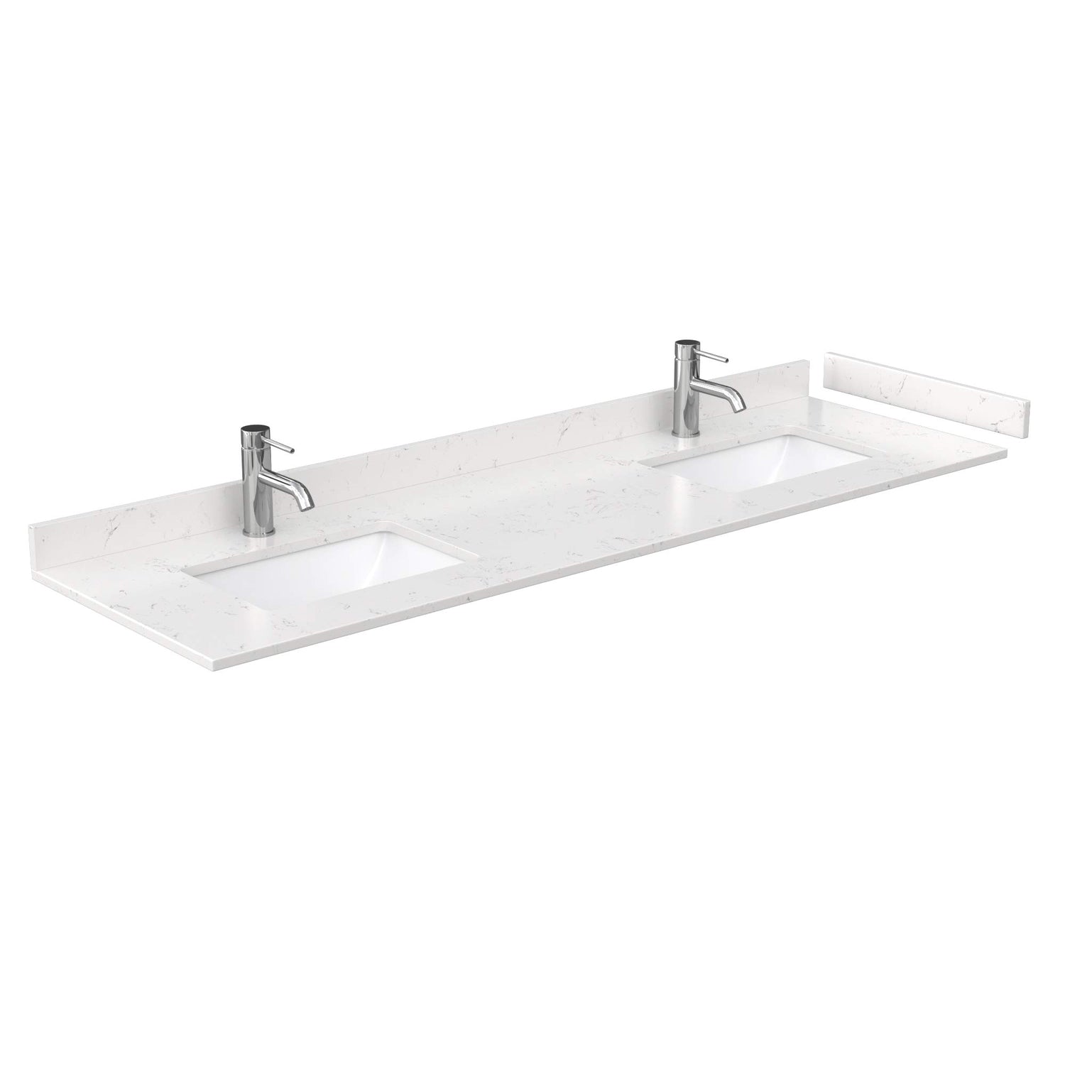 • Carrara Cultured Marble countertop includes 3" backsplash and reversible sidesplash. Backsplash comes in 2 pieces (Cut from 1 single piece due to high probability of breakage)