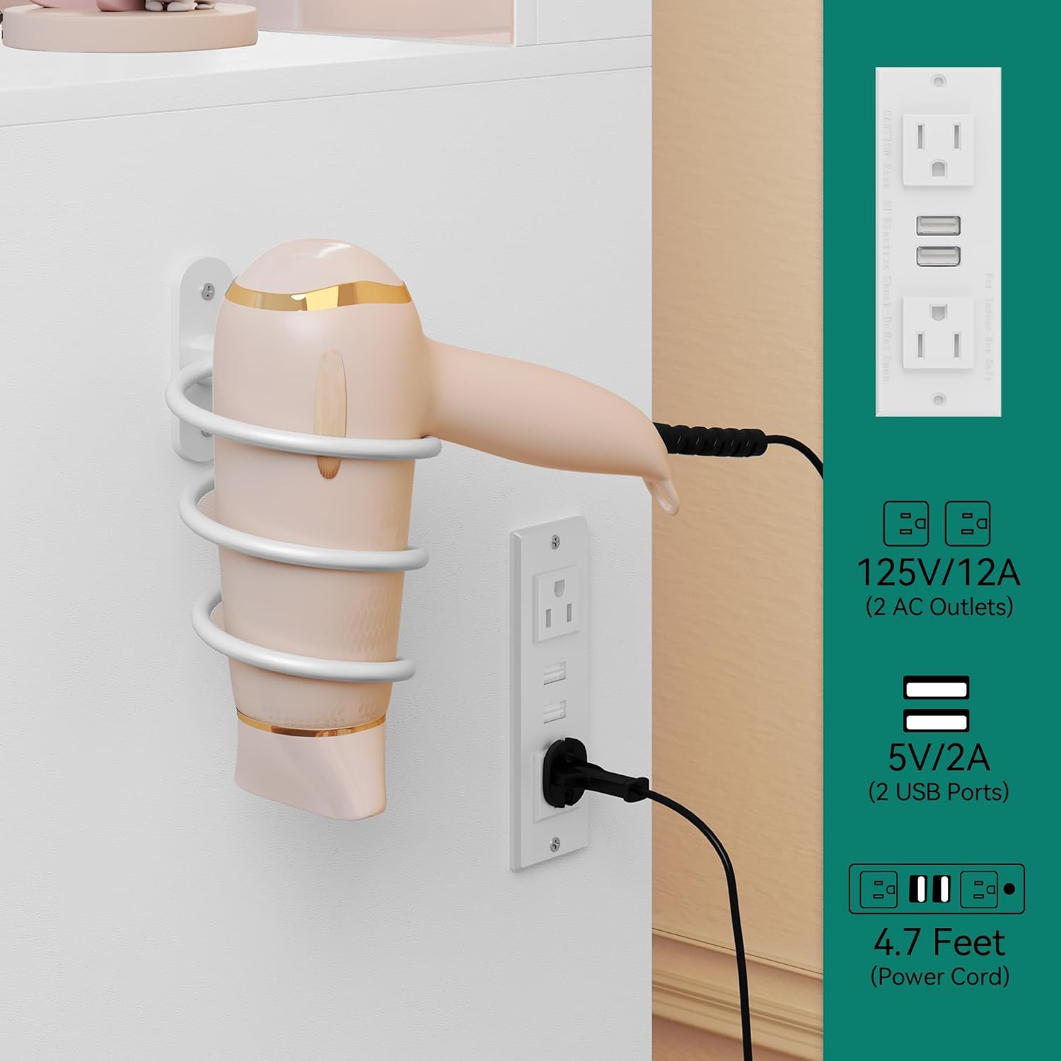 - Integrated Power Hub: Designed for convenience, the makeup vanity includes two standard outlets, two USB ports, and a dedicated hair dryer holder, making it ideal for daily use in dressing rooms, salons, or streaming setups