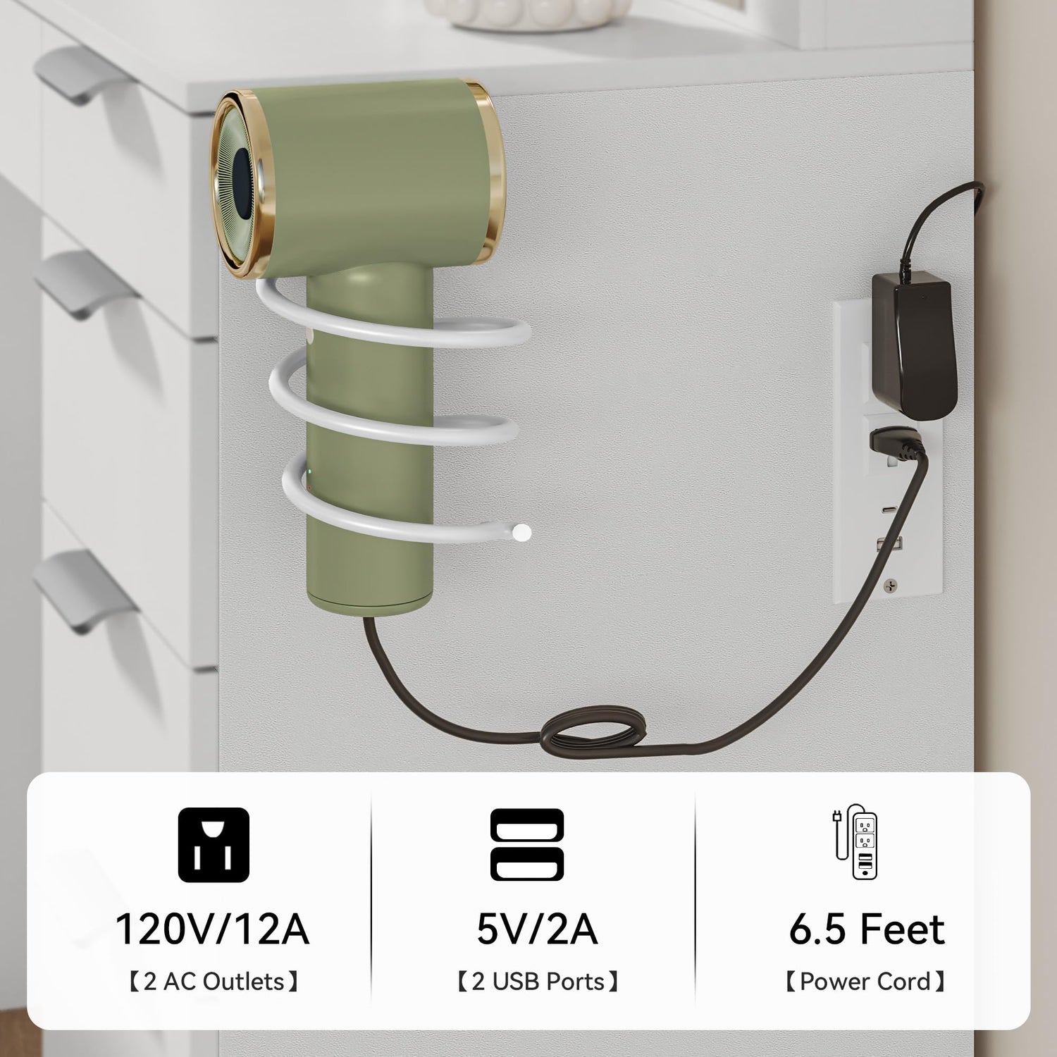 - Power-Ready Makeup Table: With 2 AC outlets, 1 USB and 1 Type-C port, this makeup table keeps all your tools and devices charged while you get ready. The built-in hairdryer holder adds extra convenience by giving your dryer a home after each use