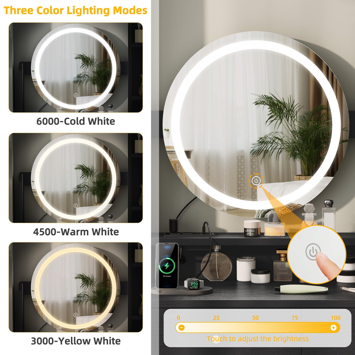 • Larger Mirror than Alternatives: Bask in the glow of our generous 17.72" diameter mirror, made for flawless makeup application. Adjust the lighting with a simple touch to suit any occasion. Enhance your beauty routine with ideal lighting every time