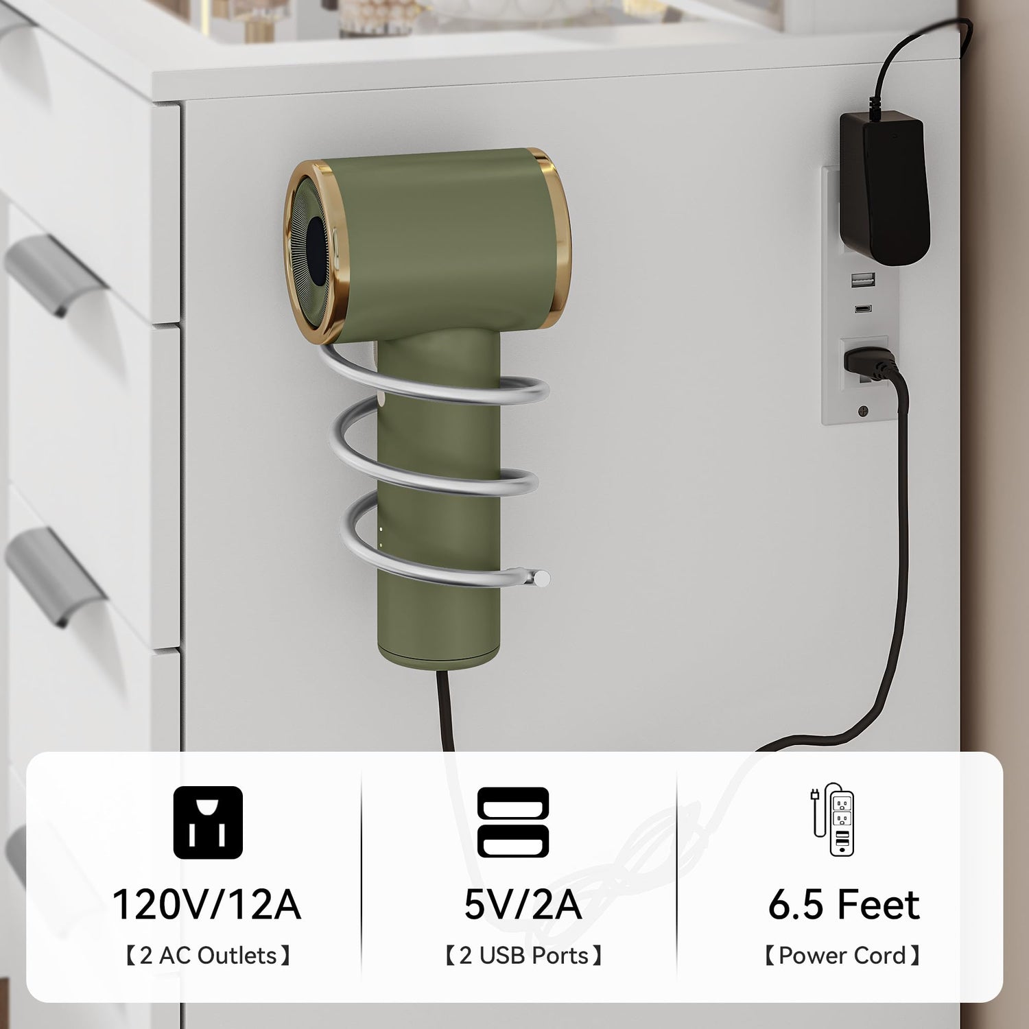 - Next-Level Functionality: Keep your beauty tools charged with 2 AC outlets, USB, and Type-C ports. The smart hairdryer holder lets you easily place your dryer, while the cushioned stool keeps you comfortable during your skincare and makeup routine