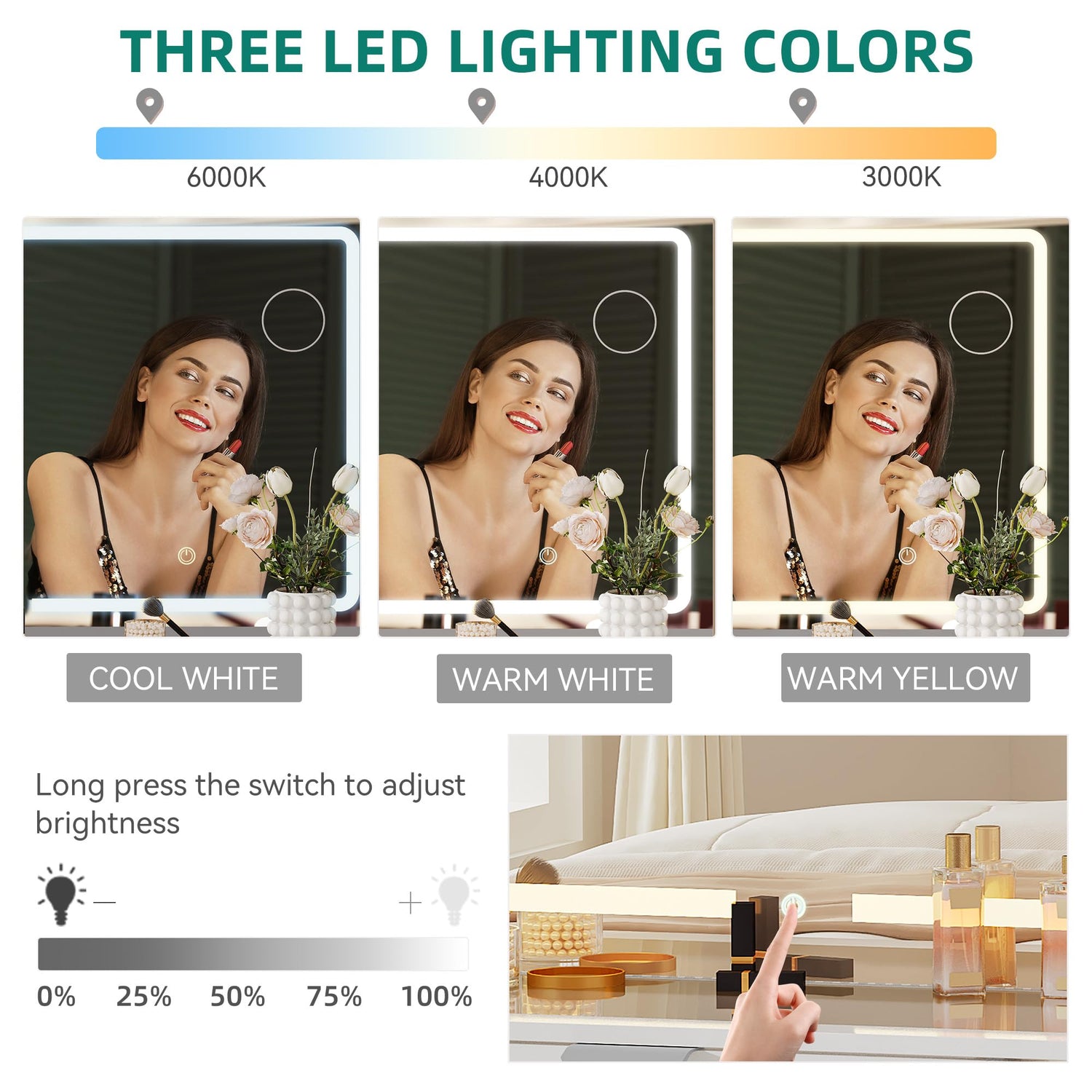 - Mirror with Spot-On Precision Lighting: Our mirror features adjustable, dimmable LED lighting controlled by a simple touch. Plus, it includes a magnifying glass for flawless detail work, making every makeup and skincare session effortless