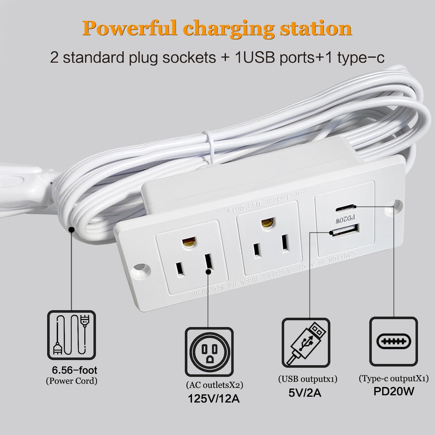 • 【Built-in Power Strip】Upgrade design!This makeup table equipped with a power strip that has 2 standard plug sockets ,1 USB ports and 1 T-C with a 4.9-foot power cord,convenient for the LED lights,hairdryer, curling iron, and charge your phone, tablet, or other electronics.