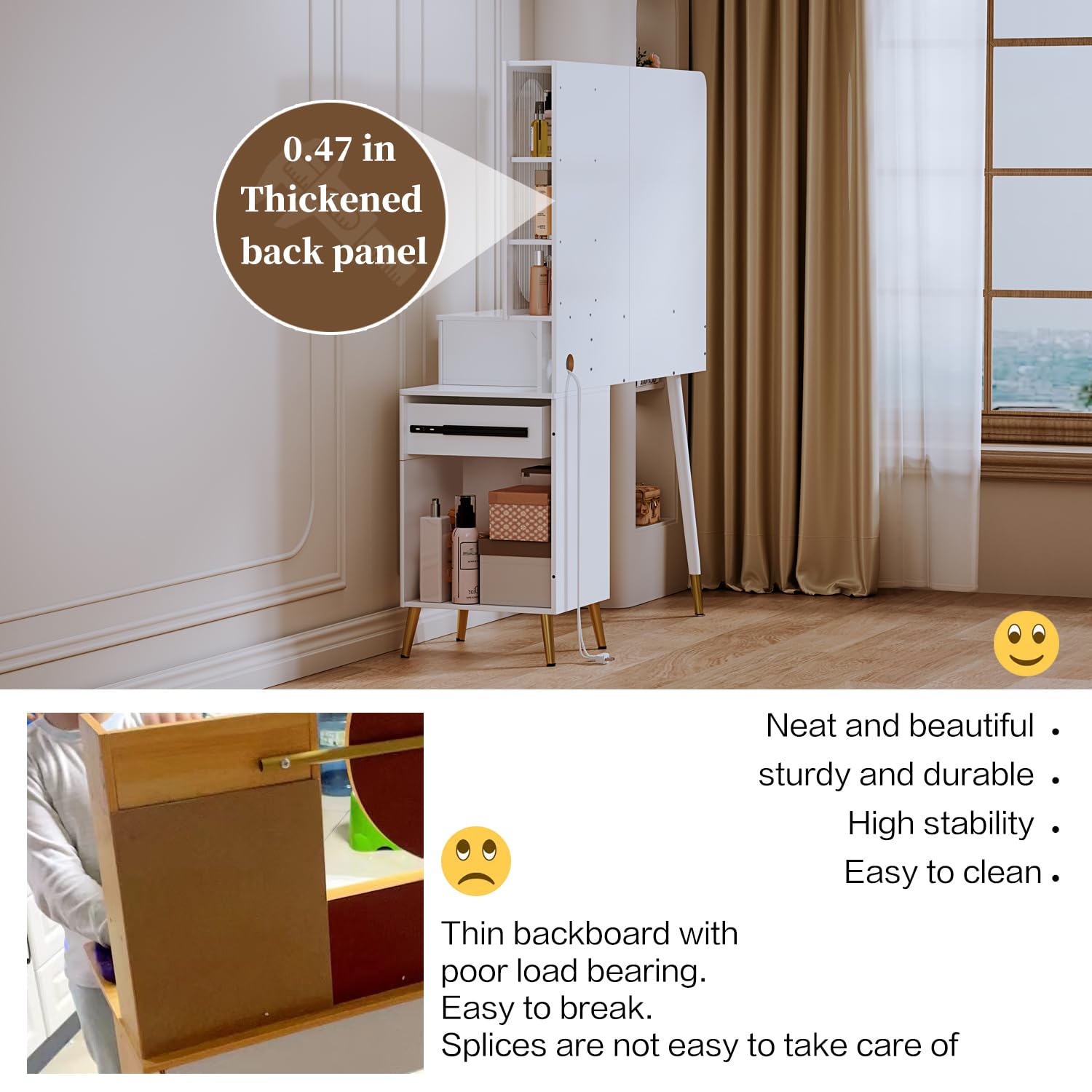 • 【Large Capacity Space 】The vanity is equipped with 3 oversize drawers and 2-layer side storage shelves for cosmetics. It provides ample storage space to store your jewelry, hair accessories and cosmetics, so that you can have a neat and tidy desktop.