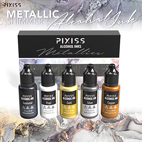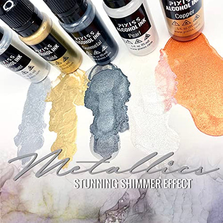 • Metallic Alcohol Ink Set, Gold Alcohol Ink, Silver, Gunmetal, Copper, Pearl, Alcohol Ink Metallic Mixatives with Extreme Shimmer for Alcohol Ink Pixiss