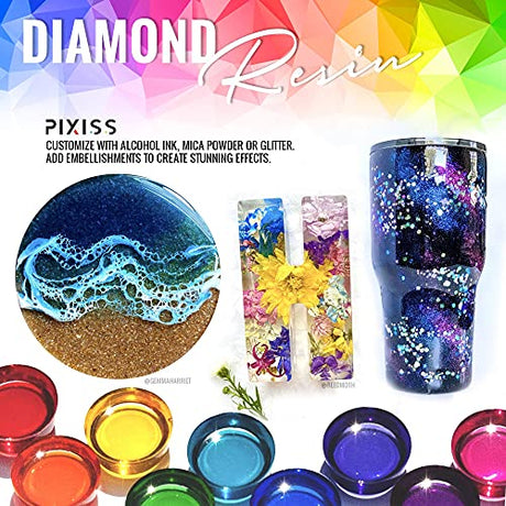 • Pixiss Epoxy Resin Crystal Clear Casting Resin for Epoxy and Resin Art Brand Easy Mix 1:1 (17-Ounce) | 15 Mica Resin Tinting Powder Pigments for Pixiss