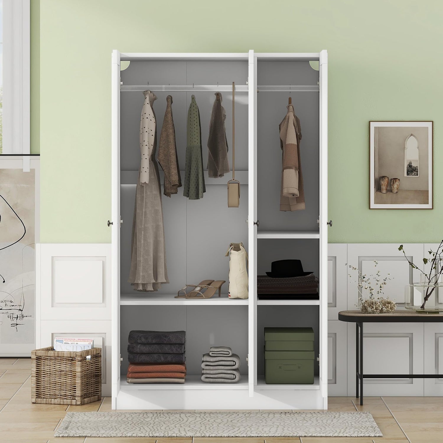 3 Door Wardrobe Armoire Closet with Shutter Doors Freestanding Wardrobe Cabinet with Shelevs and Hanging Rod Clothes, Cabinet Organizer, 21.1"D x 41.4"W x 66.9"H (White)