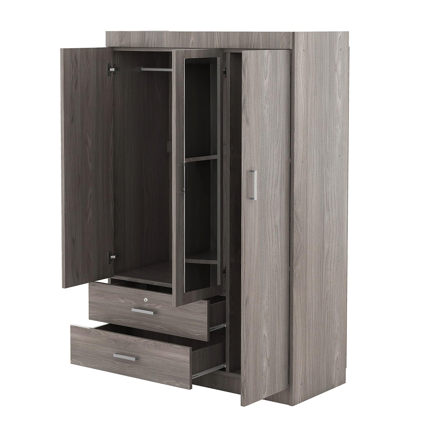- 🏡 [Modern Wardrobe with Mirror] The central door of standing closet cabinet features a convenient full-length dressing mirror, allowing you to effortlessly check your appearance before heading out. You can instantly see the effect of your attire, which greatly reduces your preparation time for going out. Larger than most 3-door wardrobes yet small enough to fit into small bedrooms!