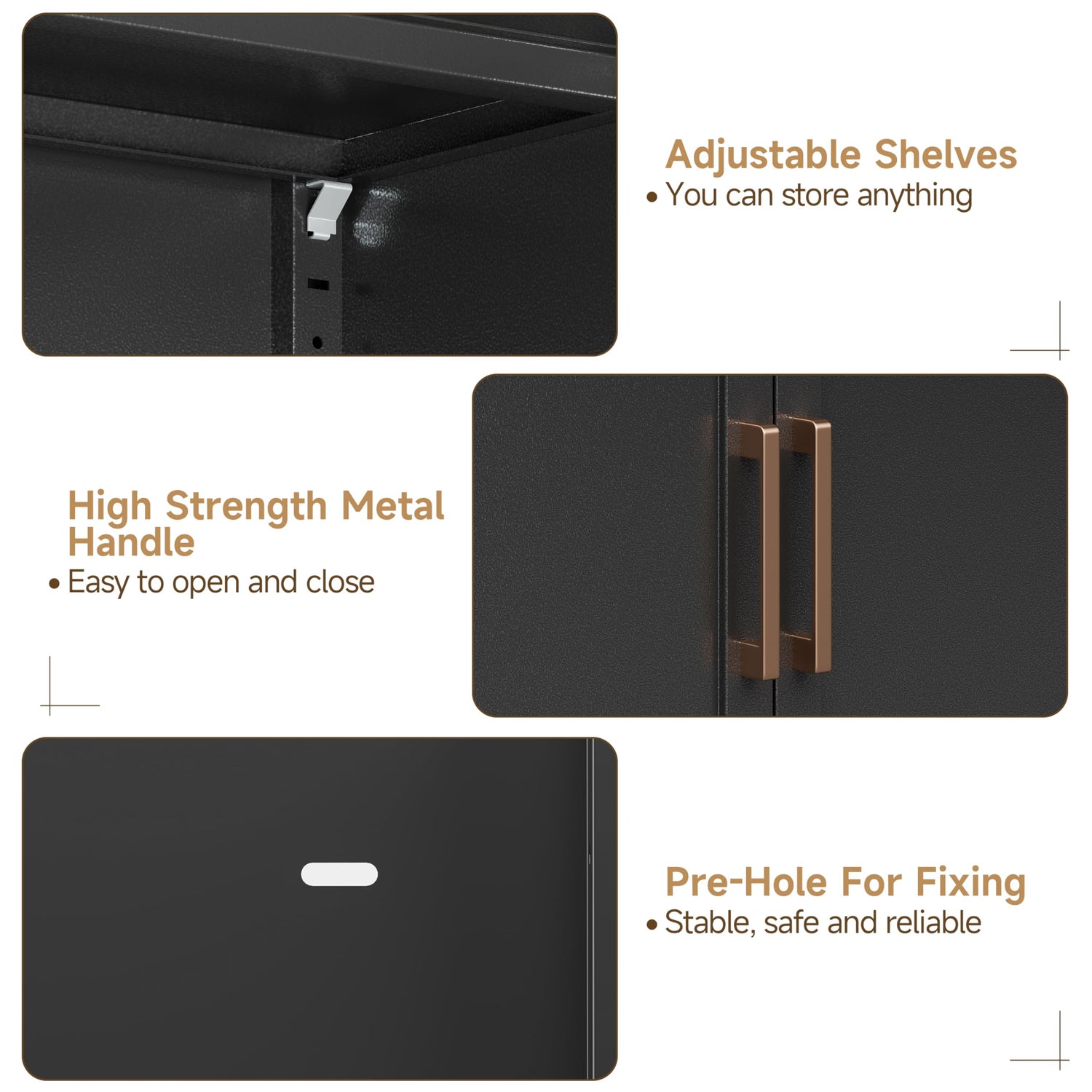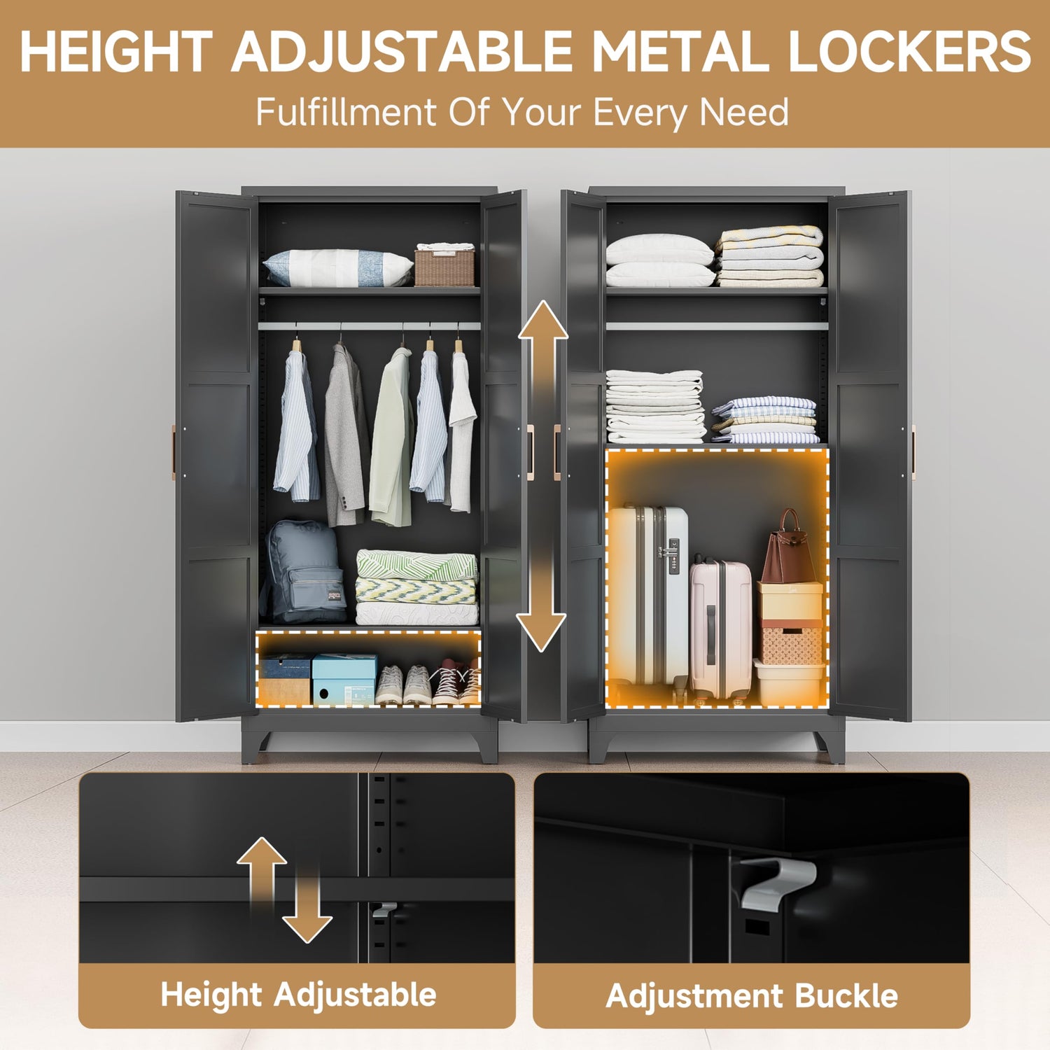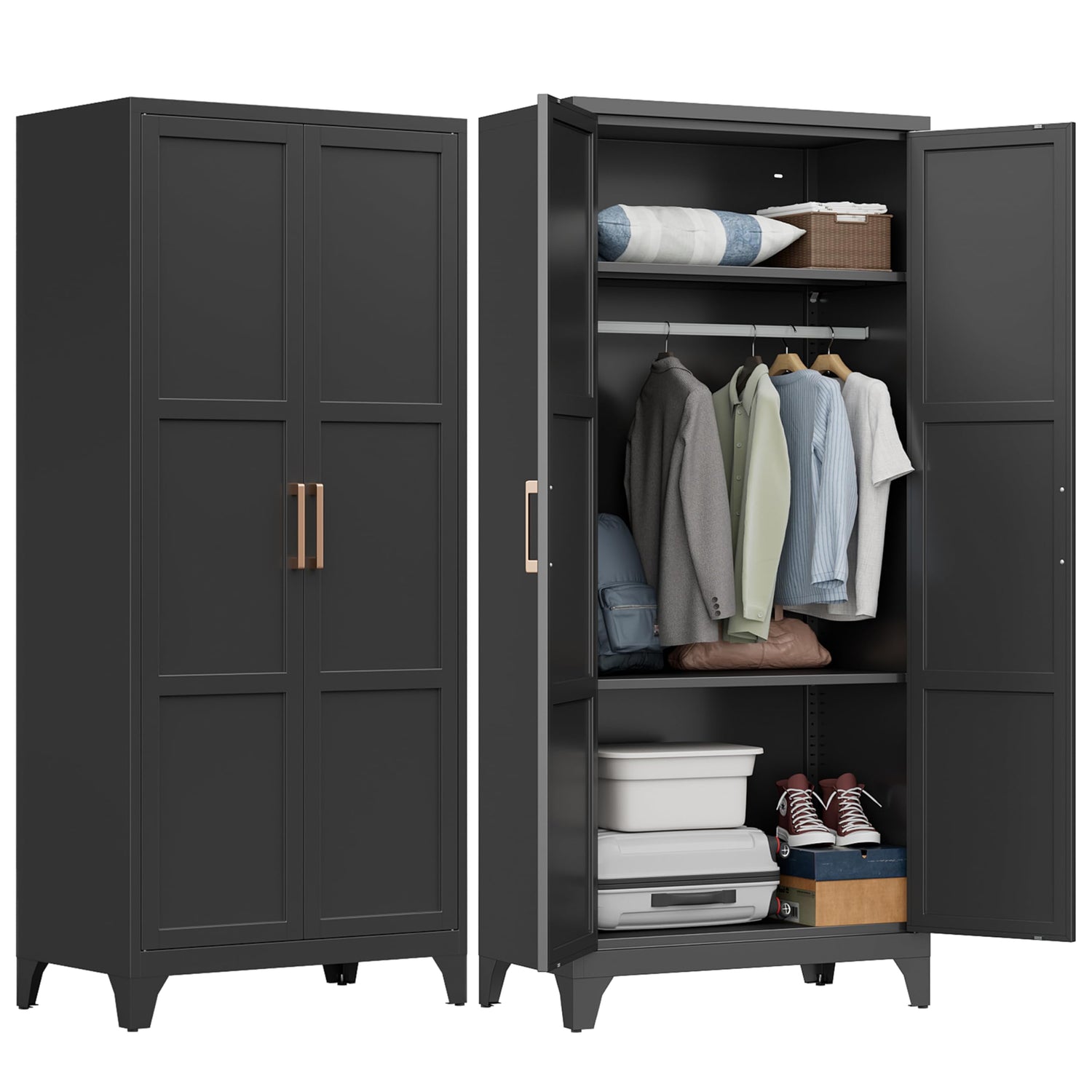 - HUMANIZED DESIGN: Our upgraded metal clothes closet feature stylish gold-colored handles that are easy to open and close. Additionally, the cabinets are equipped with a magnetic mechanism on the doors to facilitate smooth opening and closing