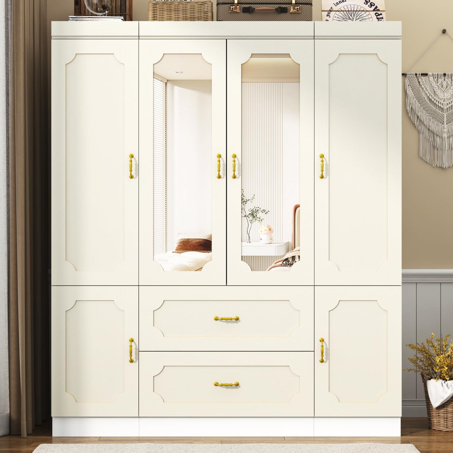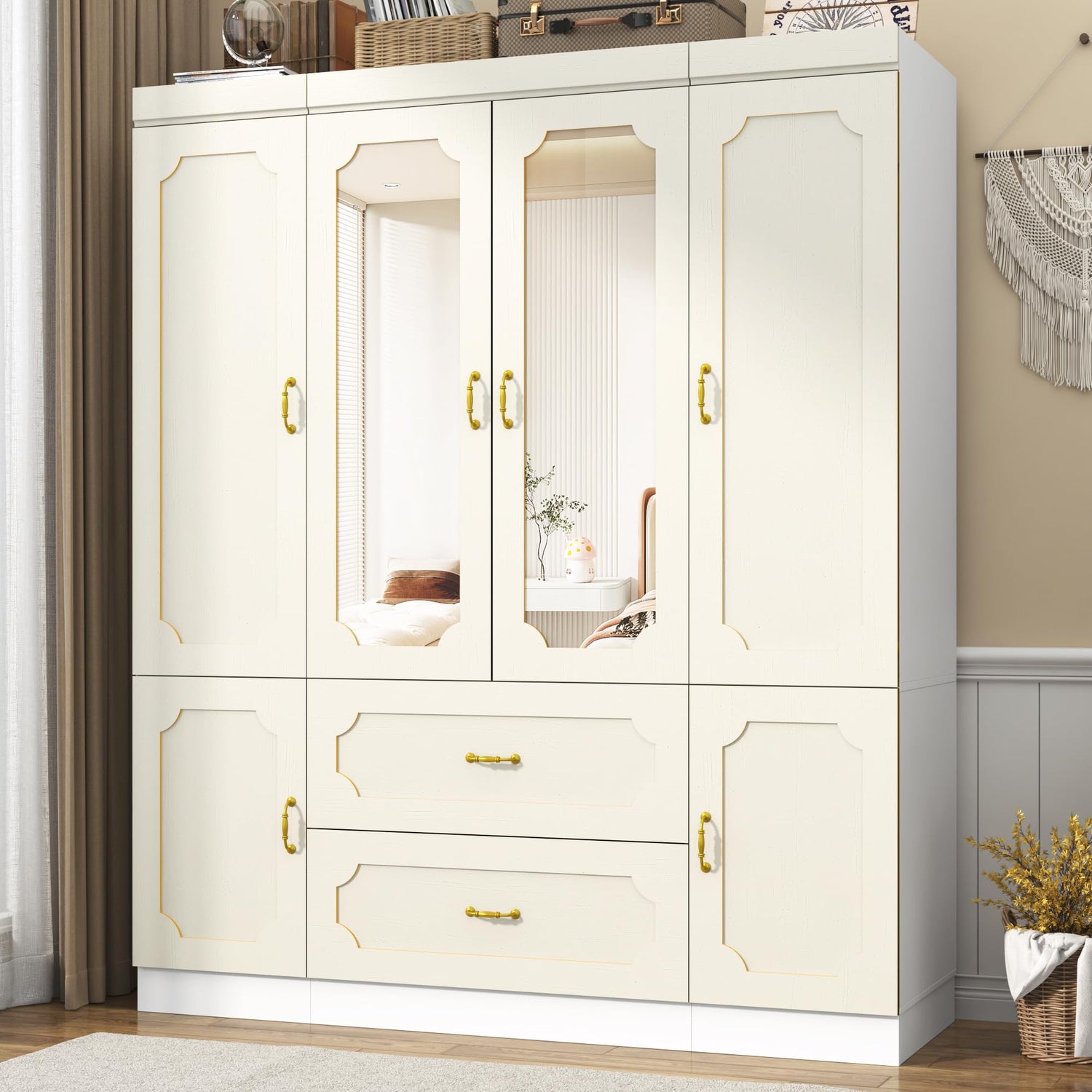 - Modern Fashion Wardrobe with Mirrors:We adapt to the wardrobe needs of our customers.our modern wood wardrobe comes with 2 mirrors. This oversized mirror gives you a full view of yourself. The White wardrobe closet with golden handles and Gold trim. show an elegant and noble charm.
