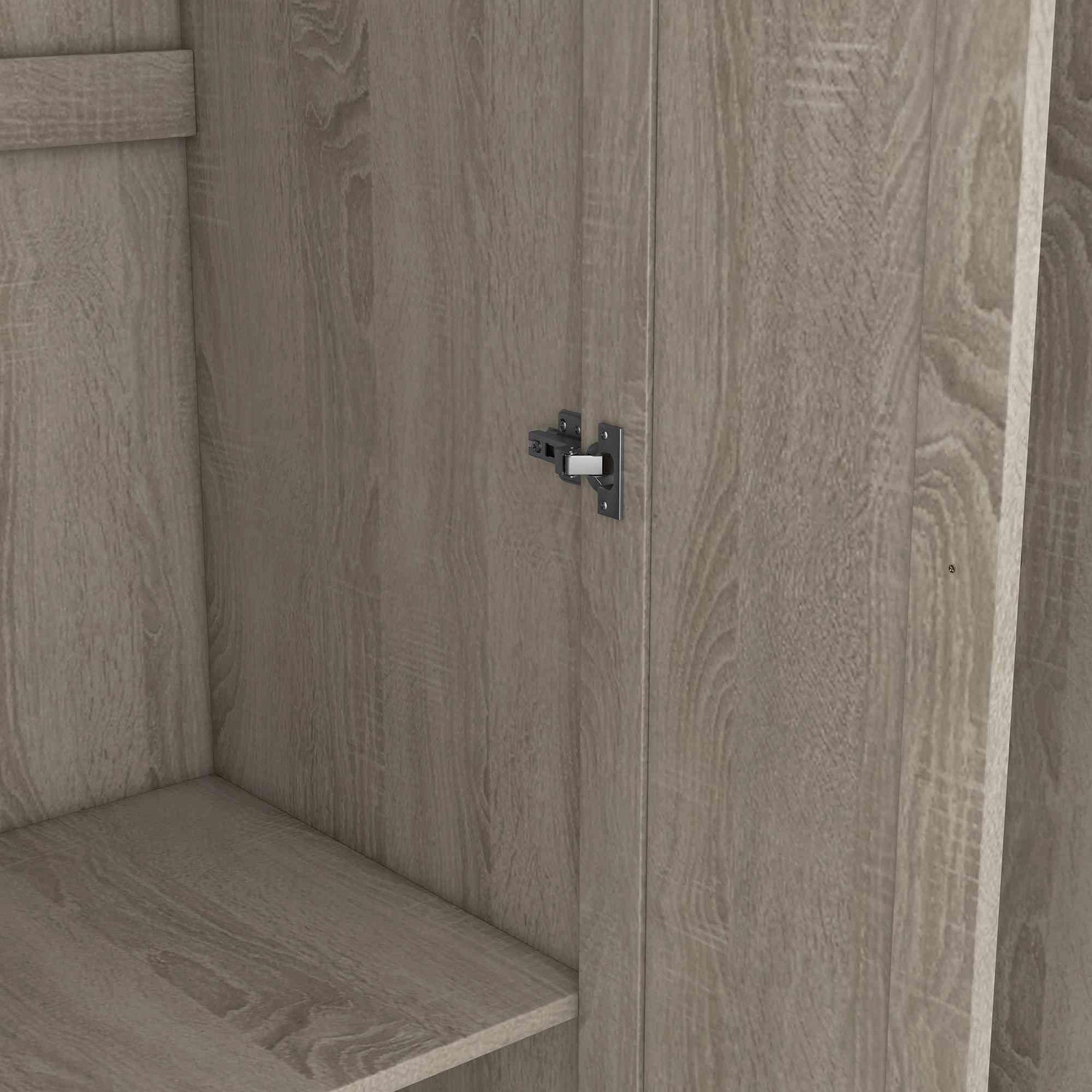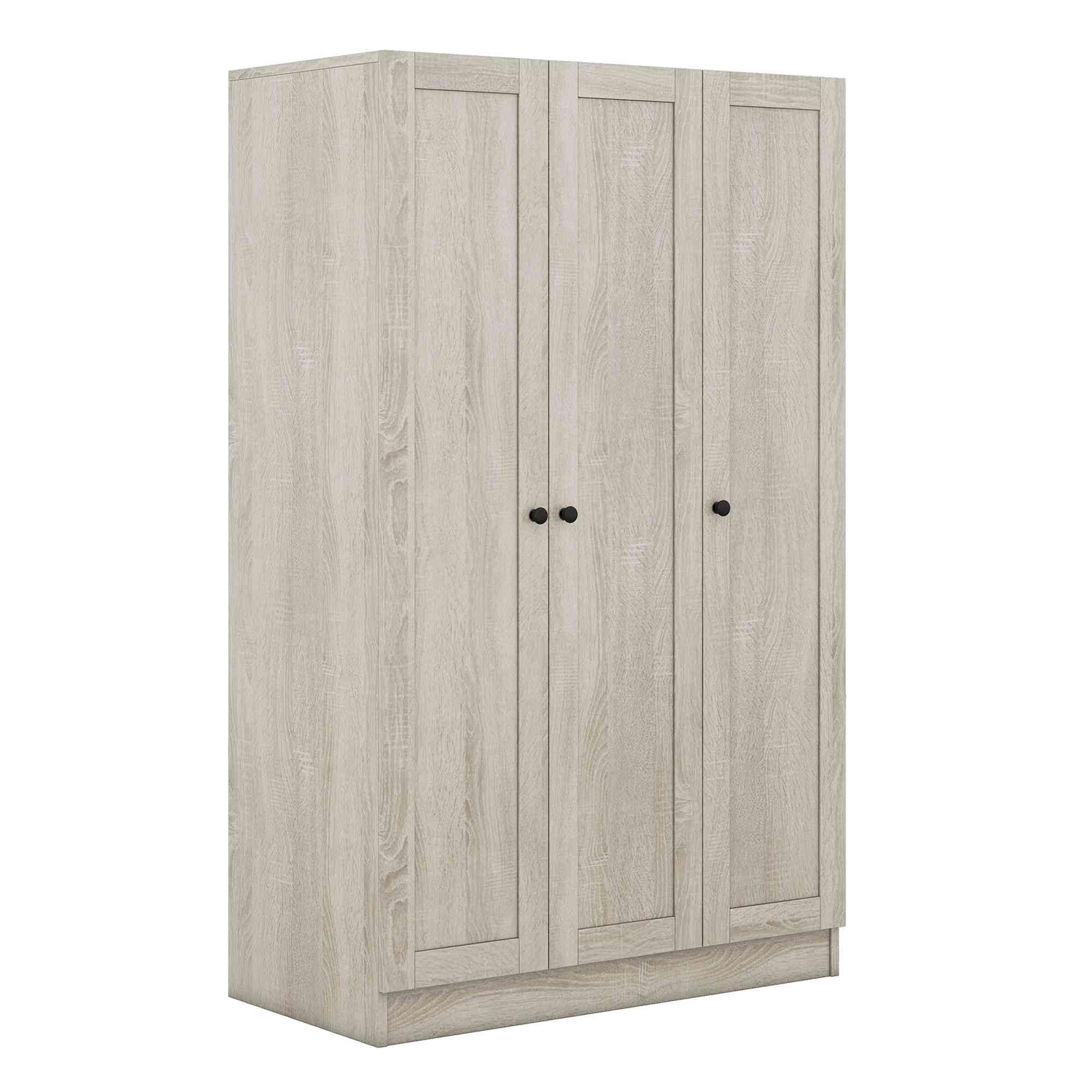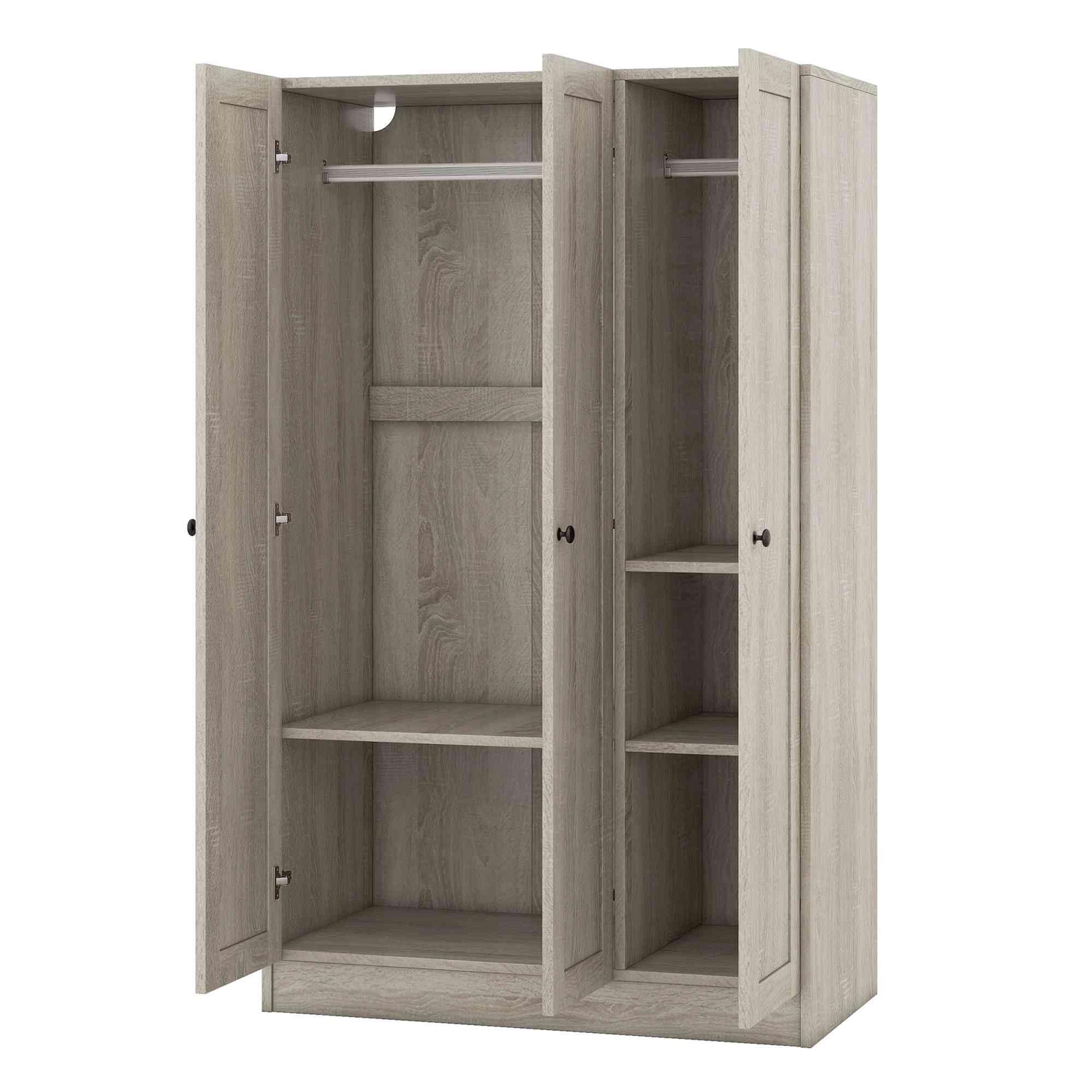 ATY 3-Door Wardrobe Closet with Shelves and Hanging Rod, Wooden Freestanding Armoire, Clothes Organizer Cabinet for Bedroom, Guestroom, Gray