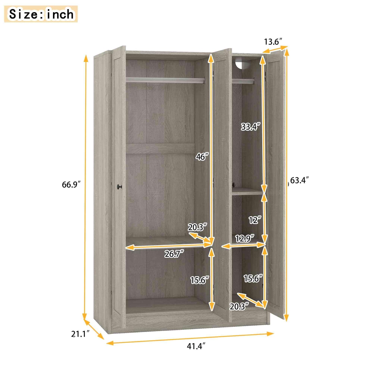 - 🌟Dimension & Assemble: Overall: 41.4"L x 21.2"W x 66.9"H. This item is a flat pack, some assembly is required, but we have provided clear instructions and tools.