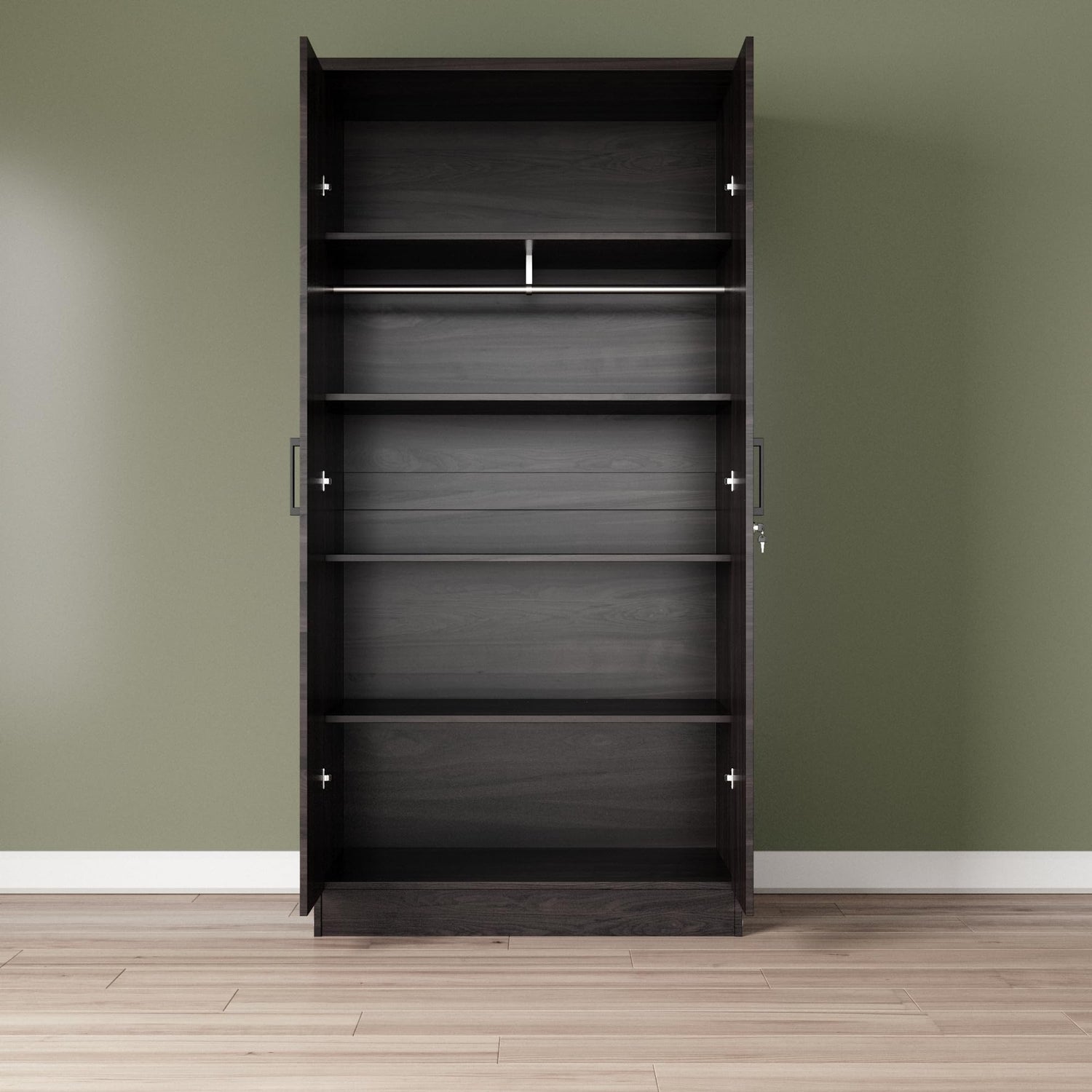 - Comprehensive and Adjustable Storage- With three detachable shelves, one permanent shelf, and a sturdy crossbar clothes rod, this armoire provides fully adjustable storage options to suit your needs.; Assemble with Ease and Confidence Ships ready to assemble with all hardware and instructions included for a straightforward setup. No power tools are needed, making assembly simple and stress-free.