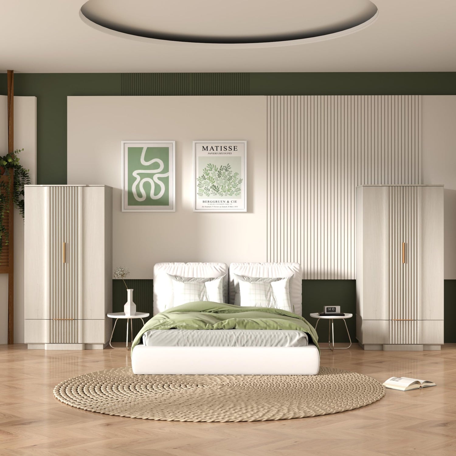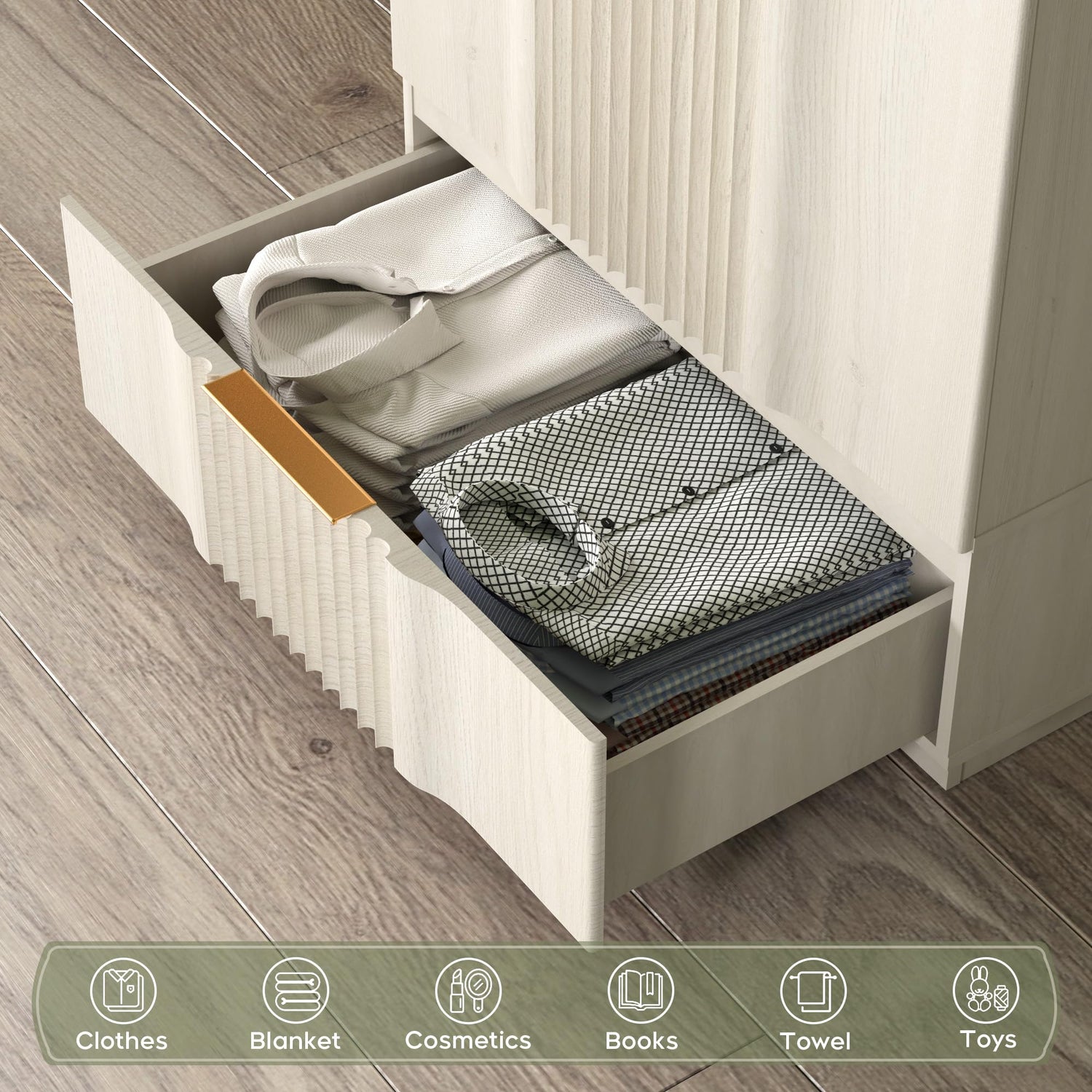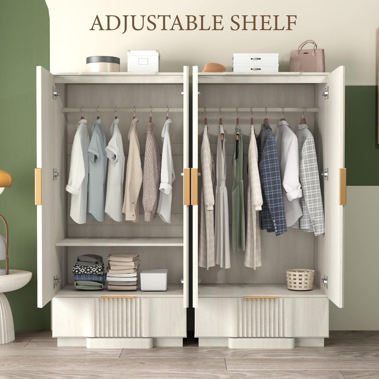 - Symmetrical Reeded Design: Closet armoire adopts eye-catching fluted doors and combines simple lines to create a modern aesthetic feeling. Can be perfectly integrated with any home decoration style. Equipped with two sets of handles, you can freely choose gold or black handles to choose different styles for the wardrobe closet.