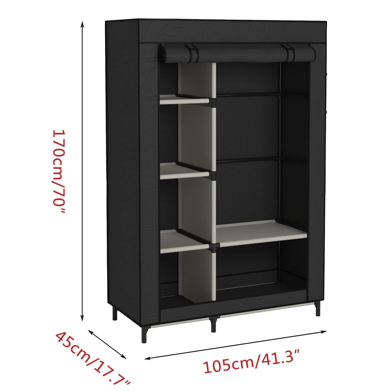 - 【Suitable size】The size of the wardrobe is 105 (41.3 '') x 45 (17.7 '') x 170 (70 ''), and the height is suitable. The top of the wardrobe can also be used to place items. It can be placed anywhere in the room without occupying a place. It is very suitable for use in living rooms, rental houses and other places.