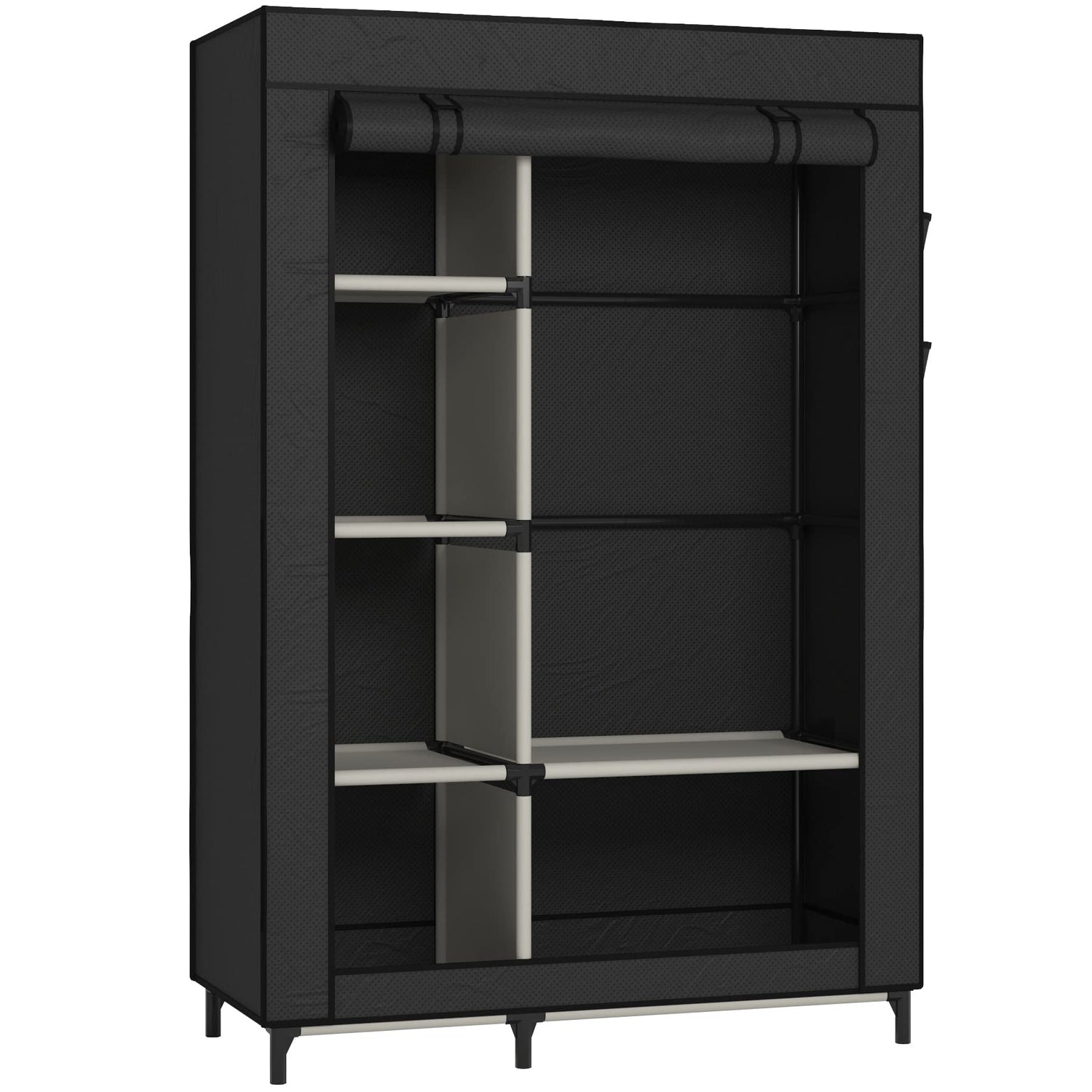 Buzowruil Canvas Wardrobe Portable Closet Wardrobe Clothes Storage with 6 Shelves and Hanging Rail,Non-Woven Fabric, Quick and Easy Assembly,Black