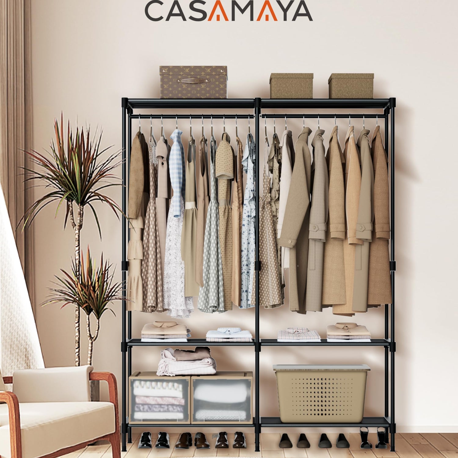 CASAMAYA Clothes Rack, Portable Closet, 54.3 Inch Large Capacity Wardrobe Closet, Clothes Storage Organizer with Shelves and 2 Hanging Rods, Easy to Assembly, Black PCT002B01