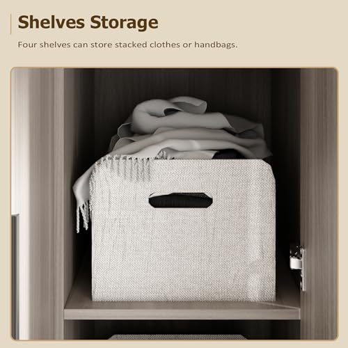 • 【Large Storage Capacity】 - This brown grey bedroom armoire provides large capacity for your different types of clothes. The armoire wardrobe closet with hanging rod is perfect to store longer clothes and dresses, the 5 large storage compartments can to store blanket, pillow, bags and so on.