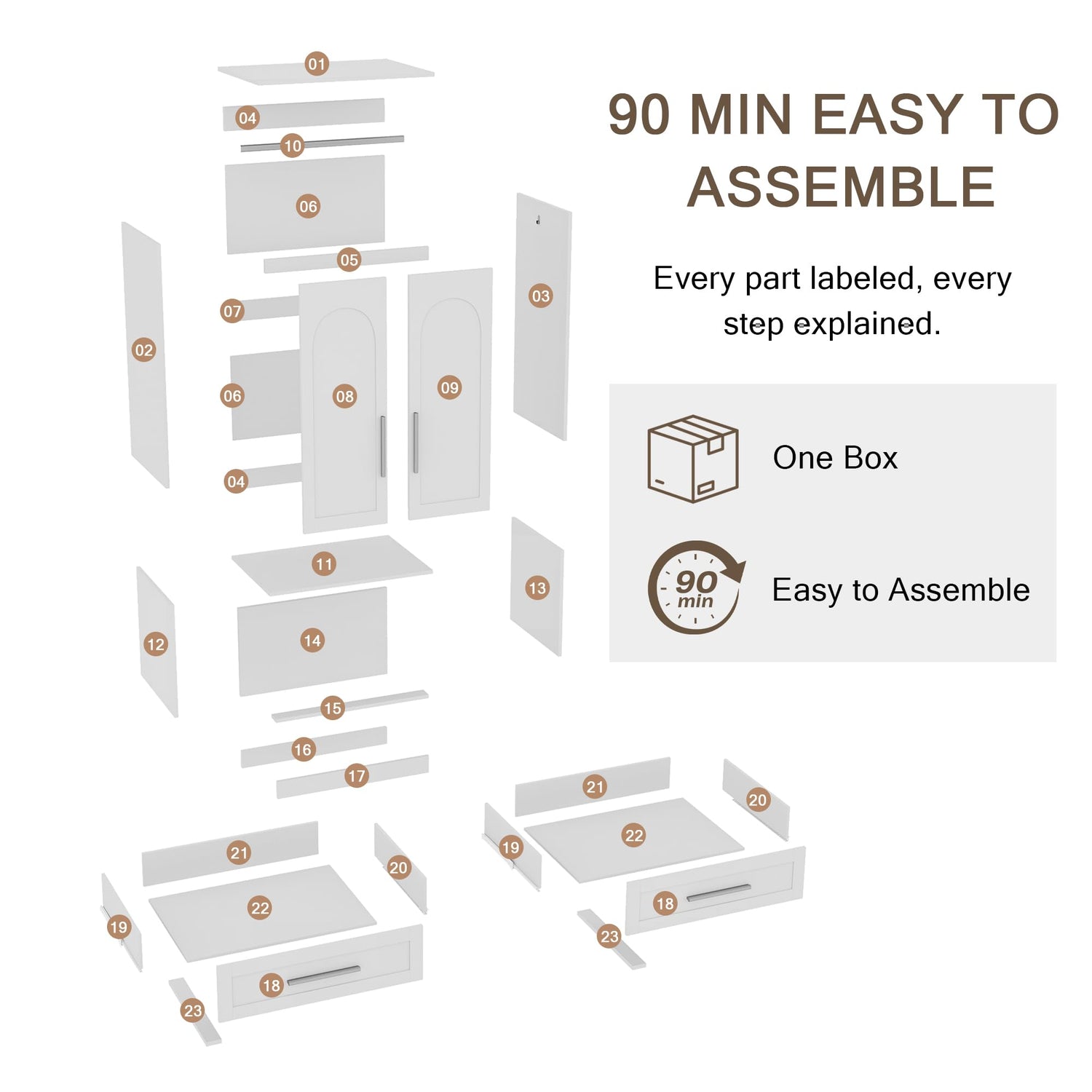 - 【Easy to assemble】All items are in one package. Comes with detailed assembly instructions and accessories, the parts are labeled, just follow the steps for easy assembly. And the material surface is smooth, just wipe it with a damp rag for easy maintenance.