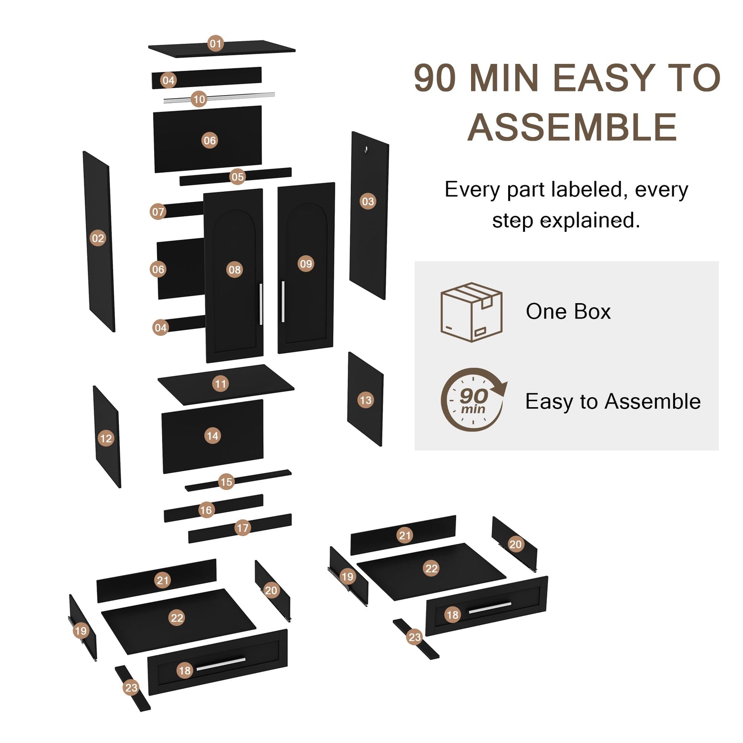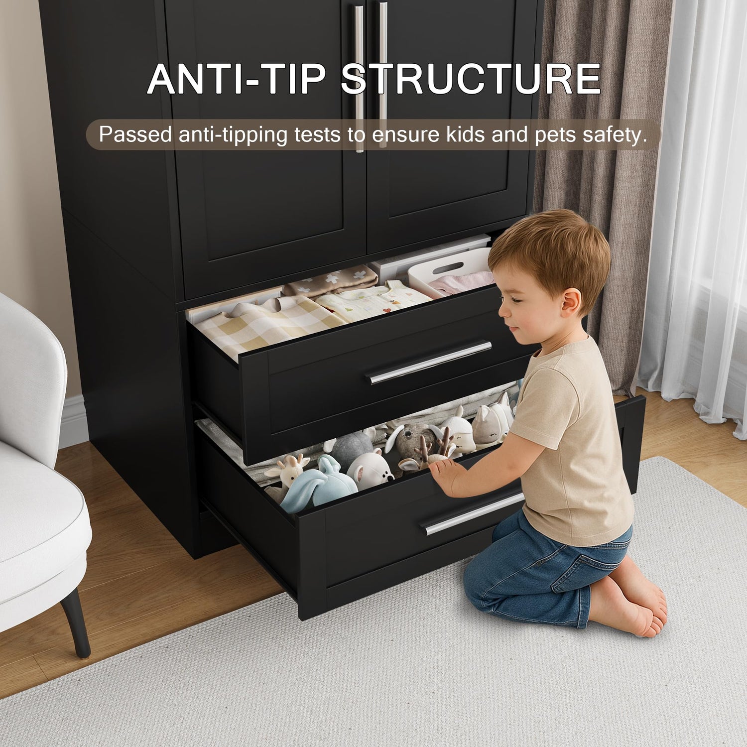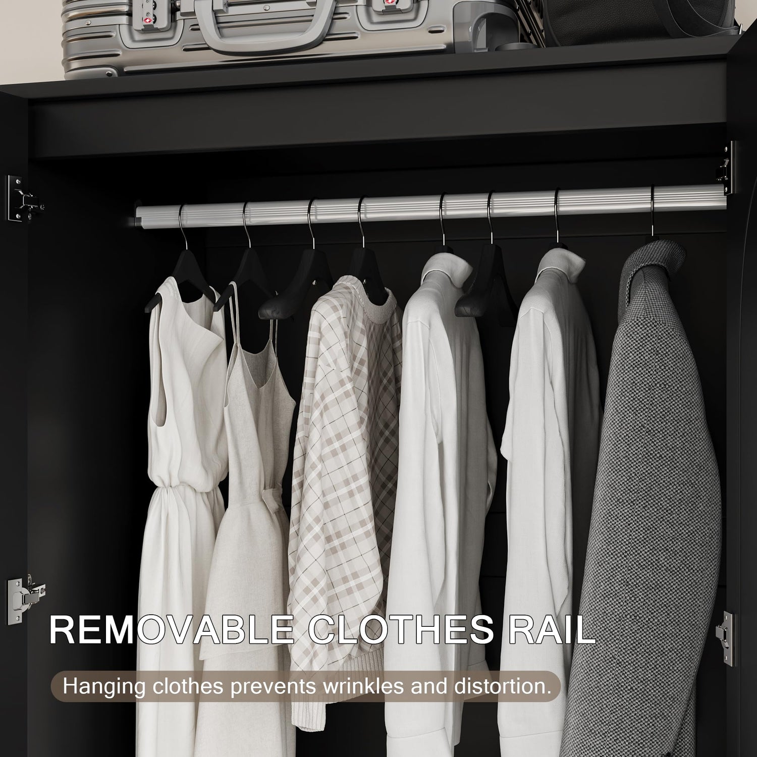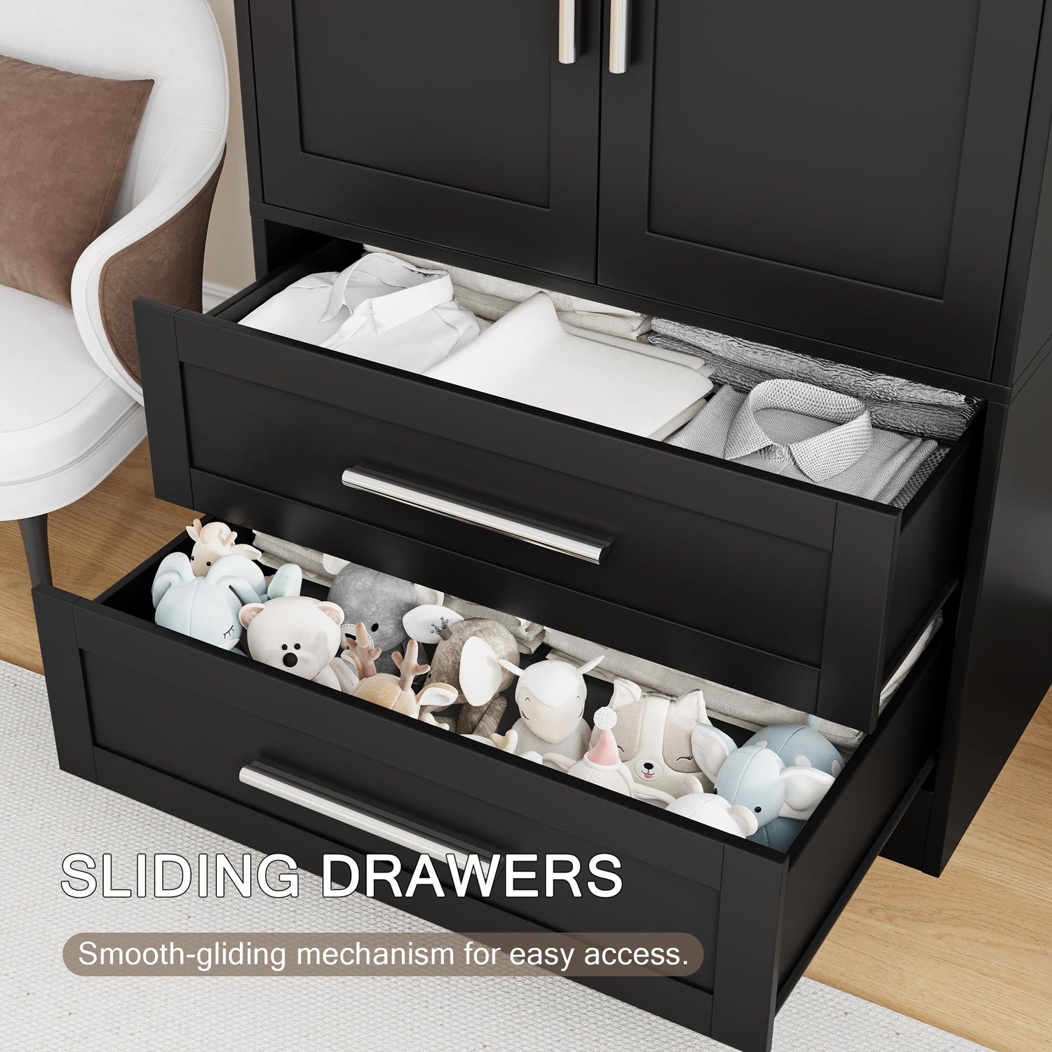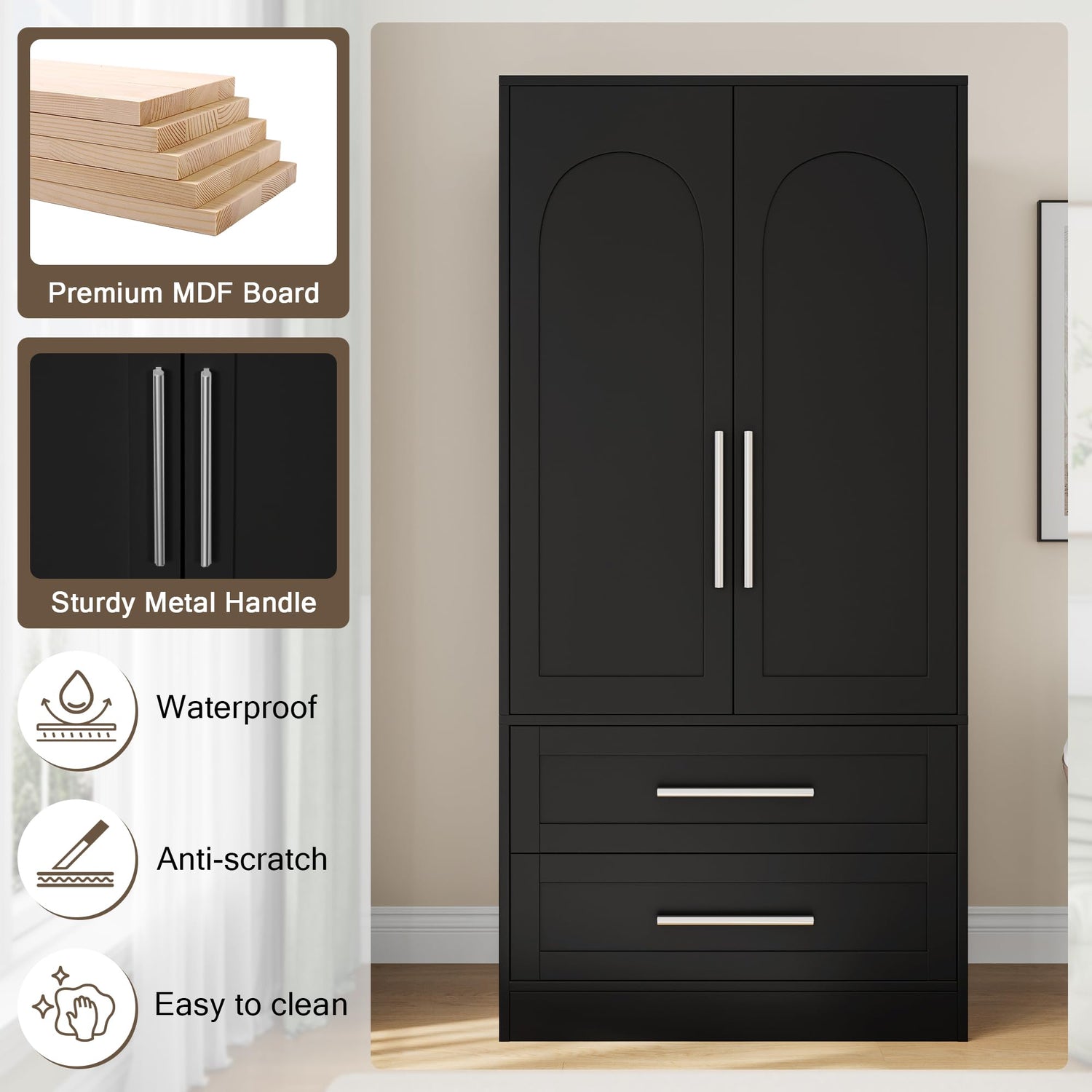 Einhomn Wooden Armoire Wardrobe Closet with 2 Doors and 2 Drawers,Freestanding Armoire Storage Cabinet with Shelves,Tall Clothing Storage Cabinet Suitable for Bedroom,Black