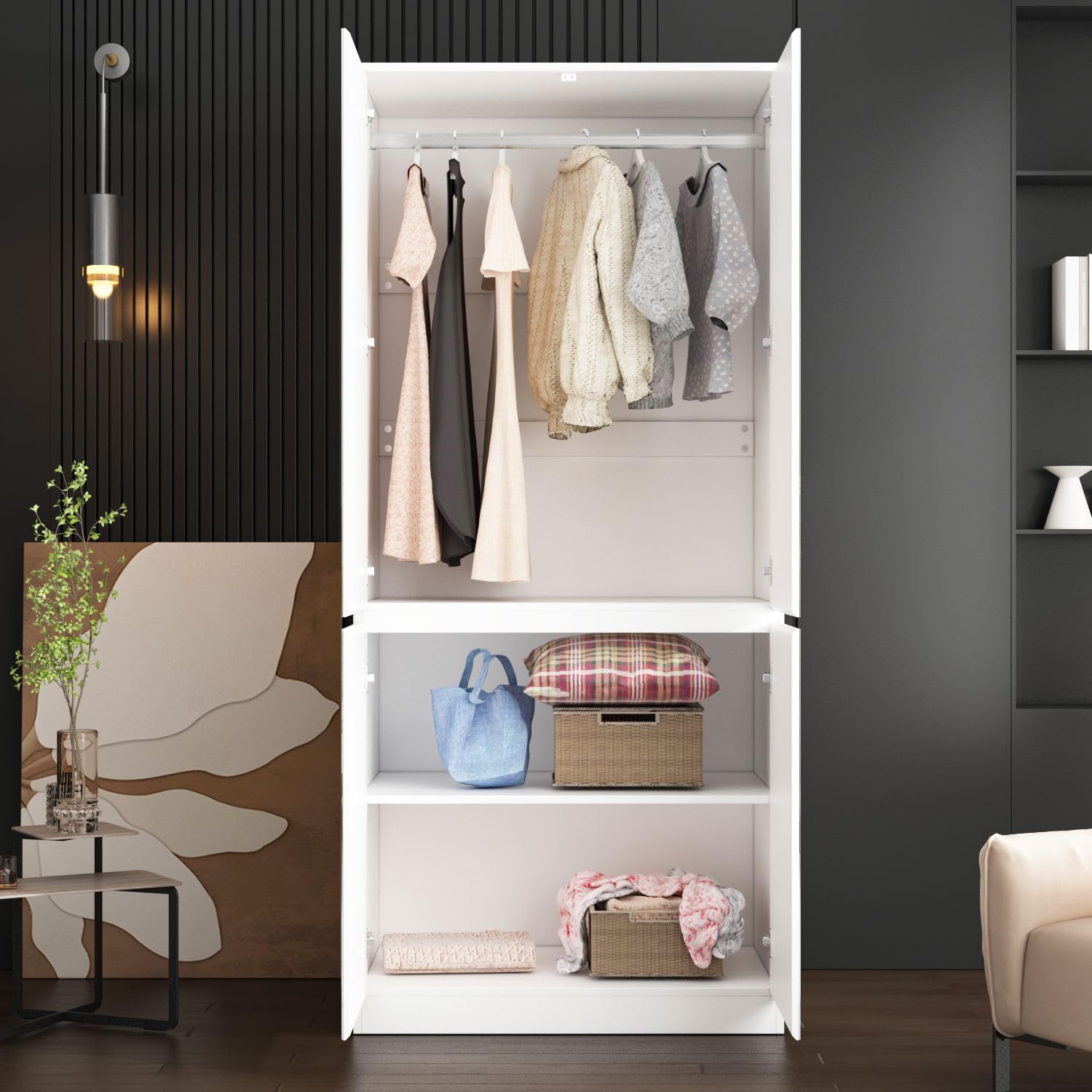 - Ample Storage - Featuring hanging area and 2 tier storage shelves, this 4 door wardrobe closet provides enough space to organize your clothing, underwear, socks, etc. The bottom shelves are ready to store bedding and other household items.