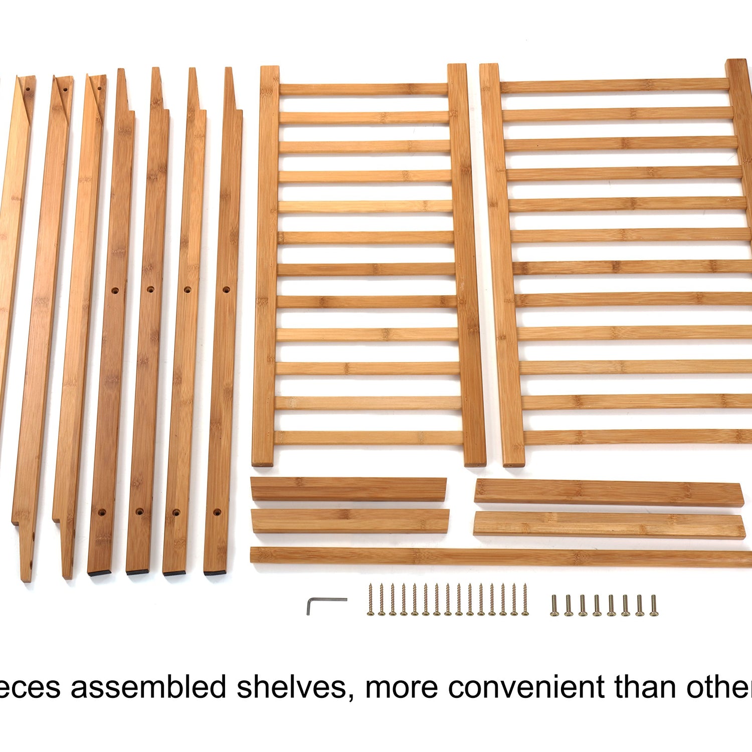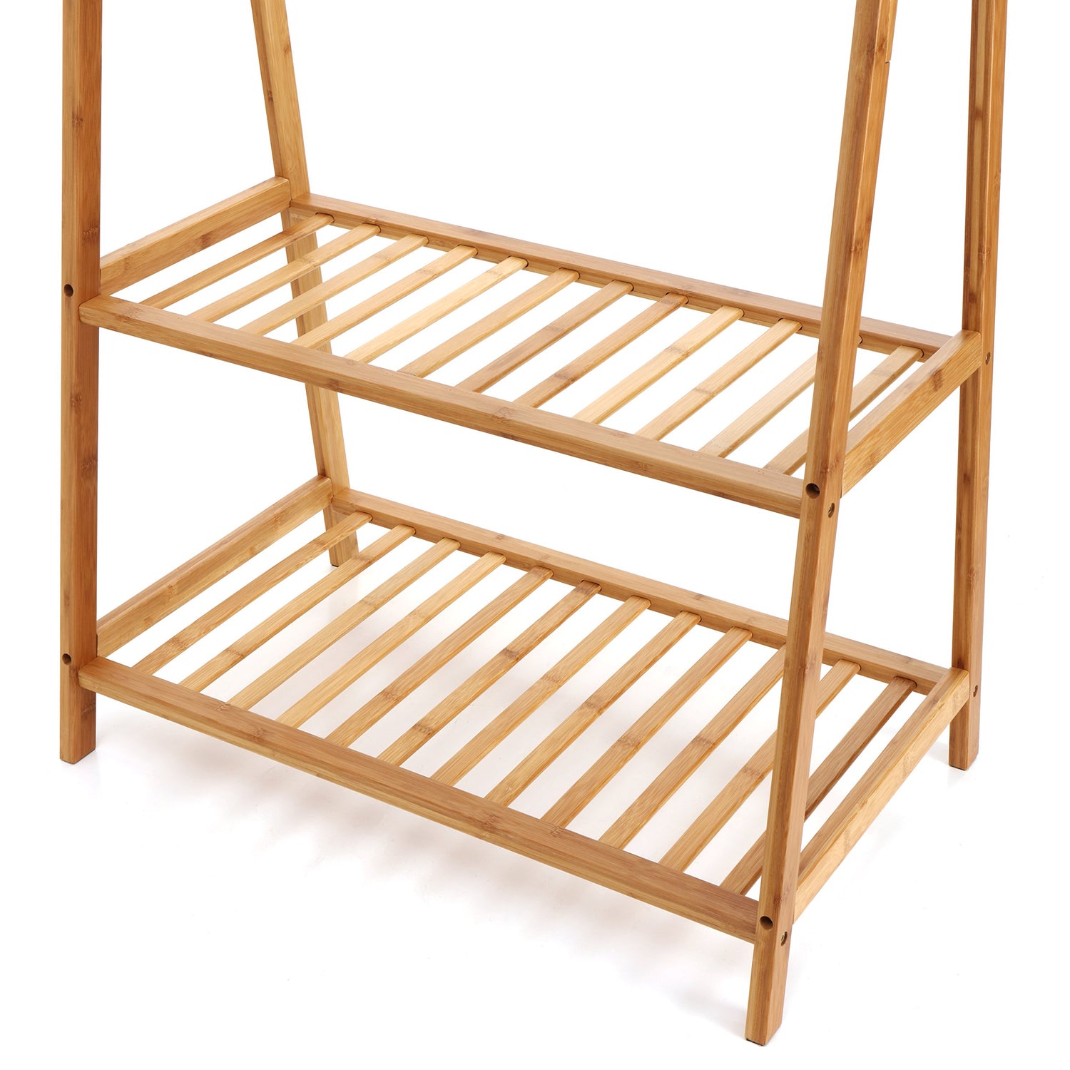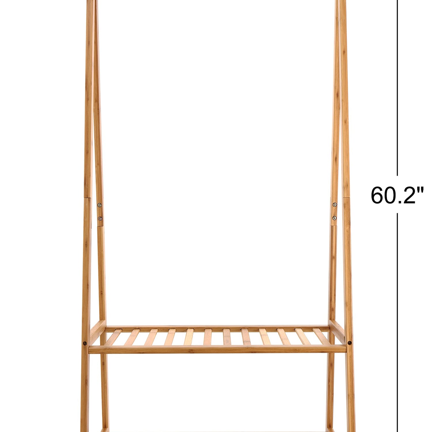 Finnhomy Bamboo Clothes Rack Portable Extra Large Garment Rack 2-Tire Storage Box Shelves For Entryway and Bed Room Patented Design