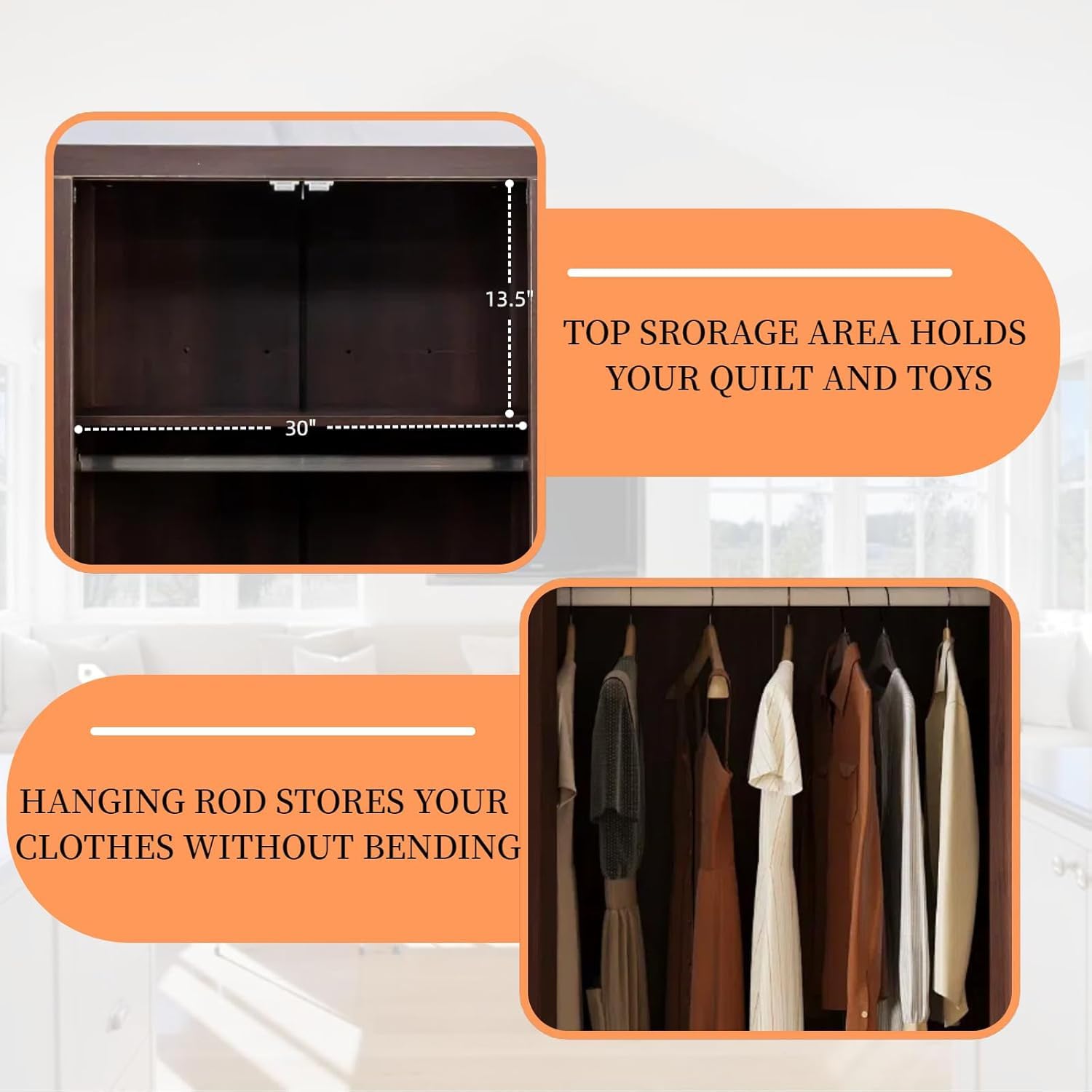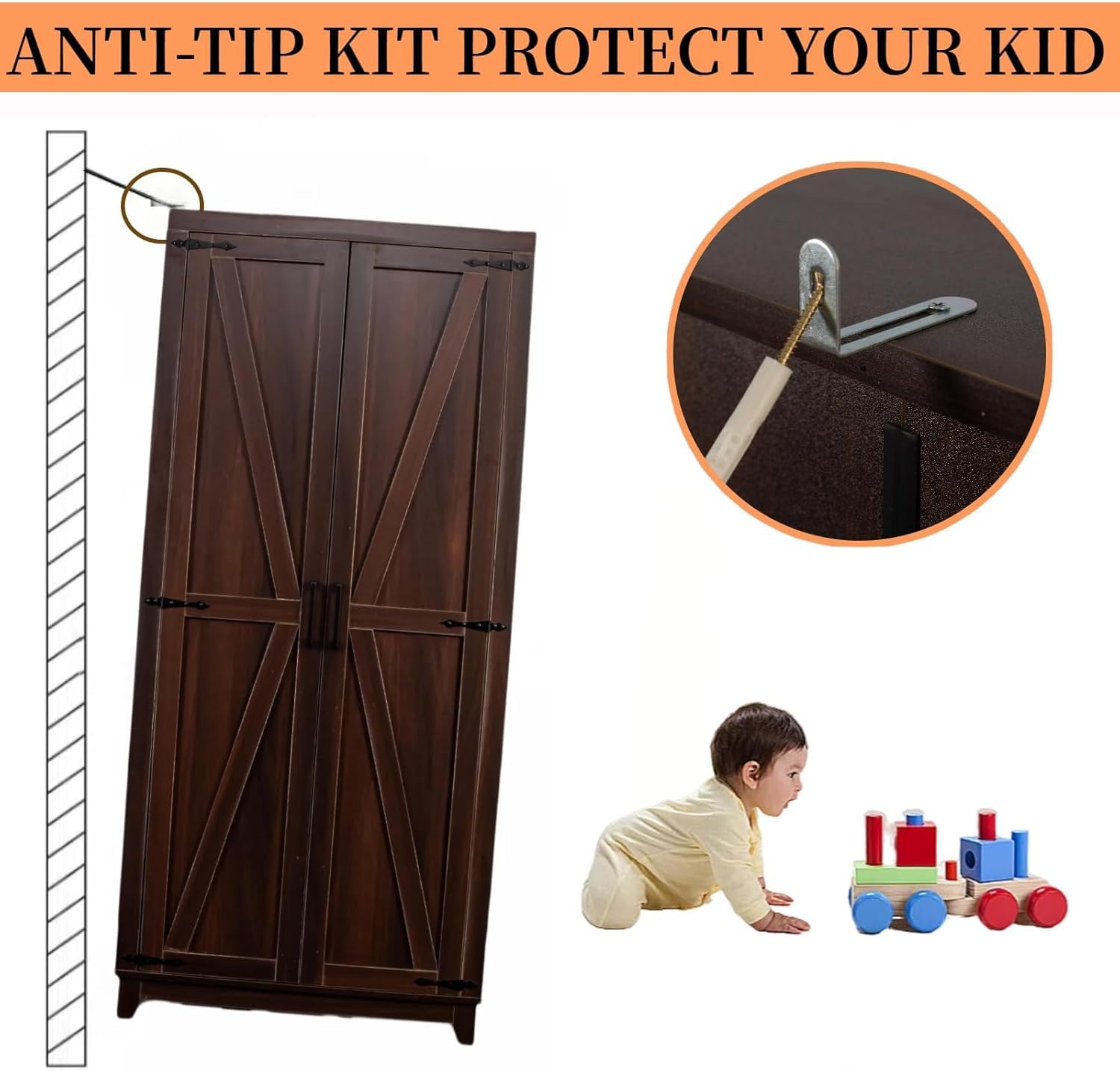 - FARMHOUSE WARDROBE CLOSET - Tall barn doors in armoires and wardrobe show strong farmhouse and classic style. Combination of black hardware and espresso finish retains the naturalness, simplicity, and practicality concepts