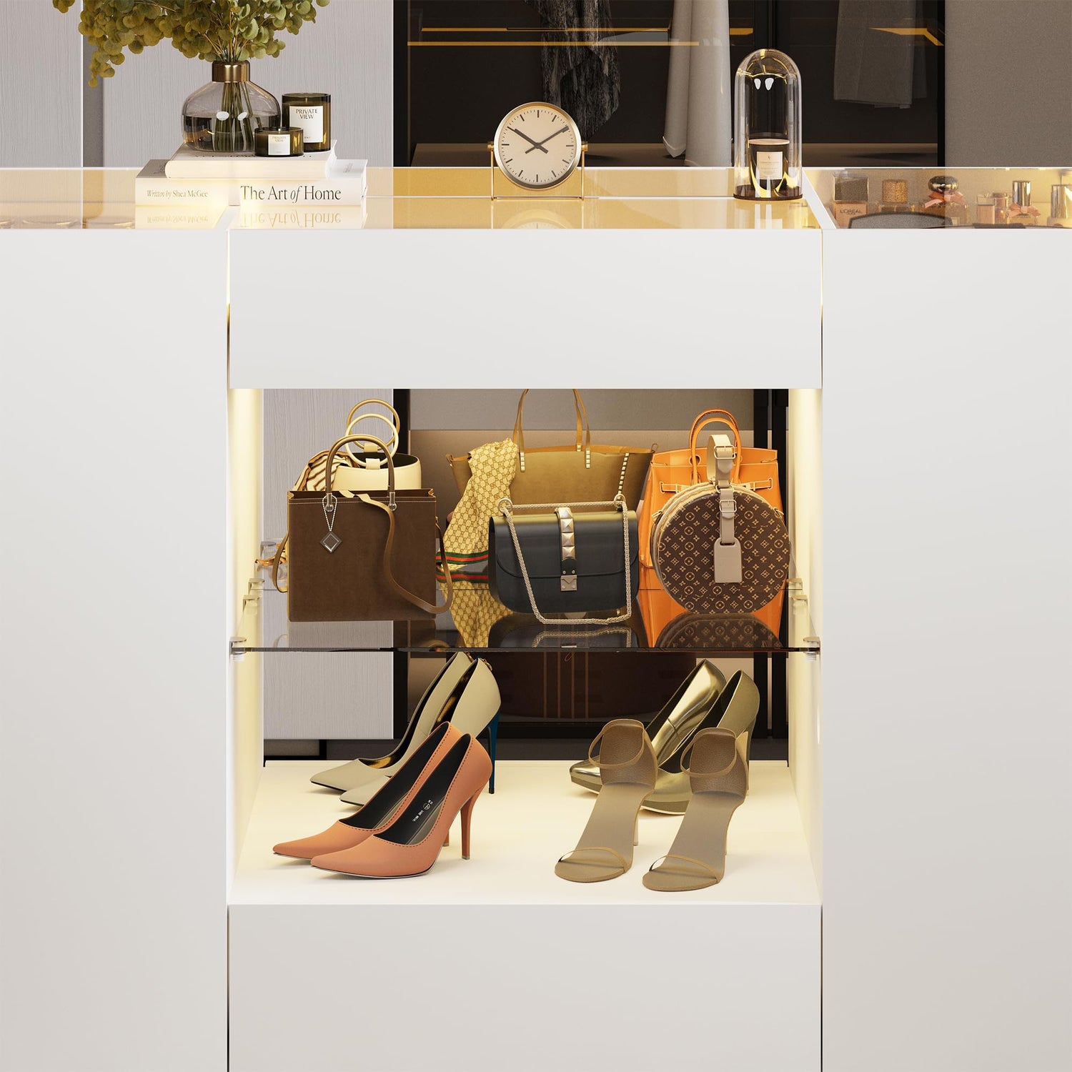• Adjustable LED Lighting Design:Built-in LED light strips offer three lighting modes—cool light, natural light, and warm light. These adjustable settings create a customizable atmosphere that highlights displayed items while enhancing the overall ambiance of your walk-in closet or boutique