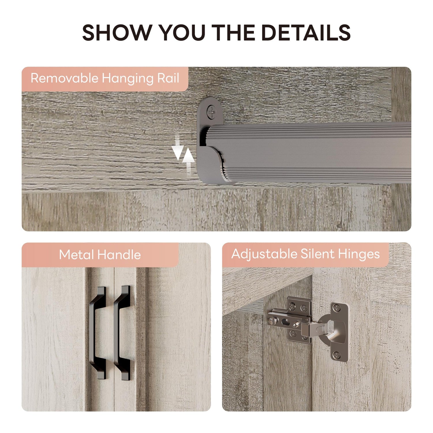 - 2 Doors & 2 Drawers Design: Equipped with two doors and two drawers, this wardrobe offers convenient access and organized storage, keeping your clothes and accessories neat and easily accessible