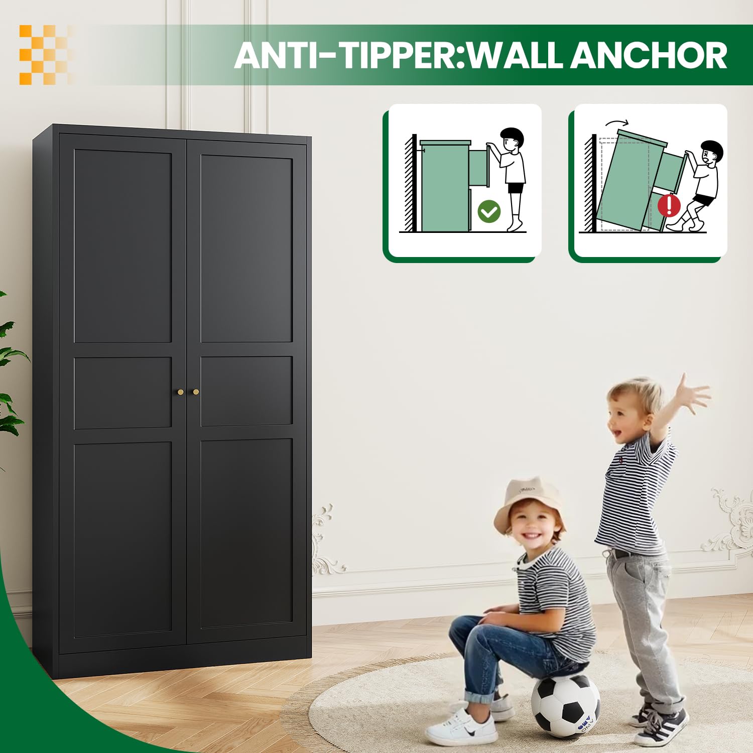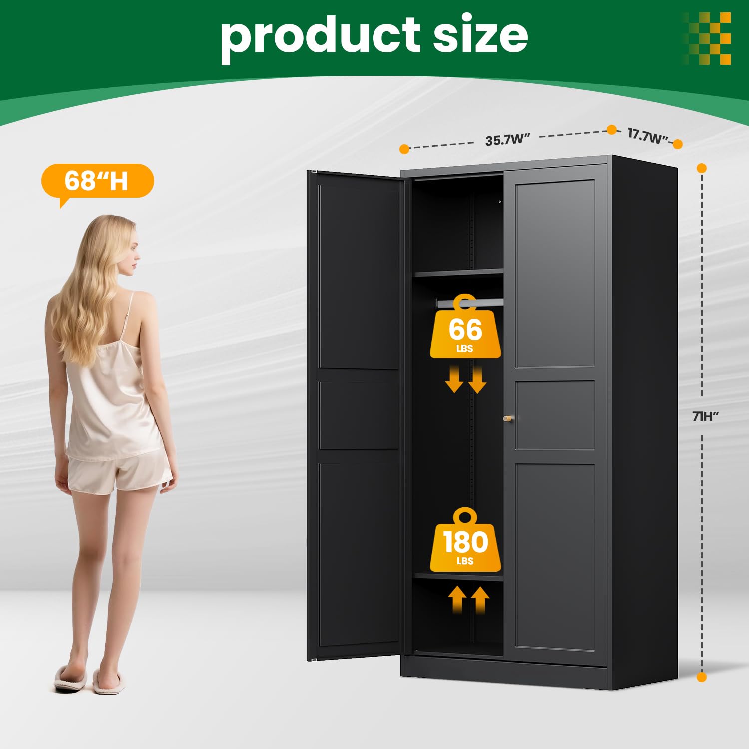LISSIMO Metal Wardrobe Closet Cabinet,Armoire Wardrobe Closets Storage Cabinets with Doors and Shelves for Laundry Room,Bedroom,Home Office,Bathroom(Black