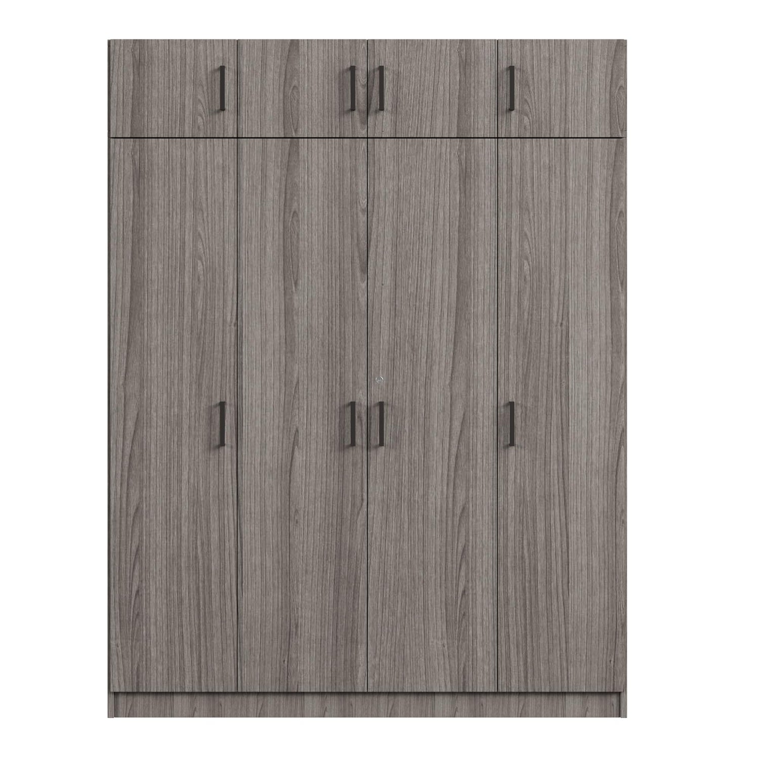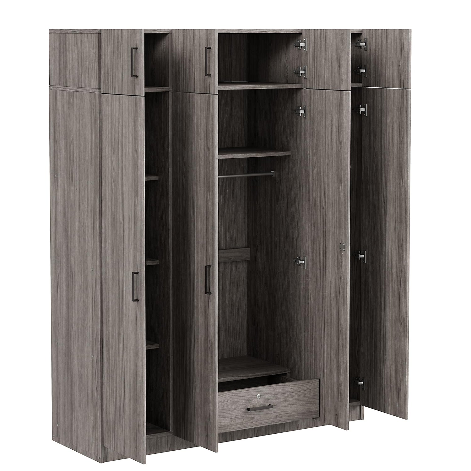 Merax 4 Doors Storage Wardrobe with Hanging Rail, Large Wardrobe Closet with 1 Drawer, Wooden Wardrobe Closet Organizer with Top Cabinet for Bedroom, Laundry Room, Gray