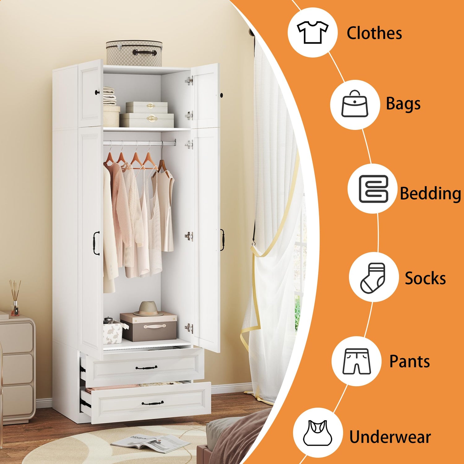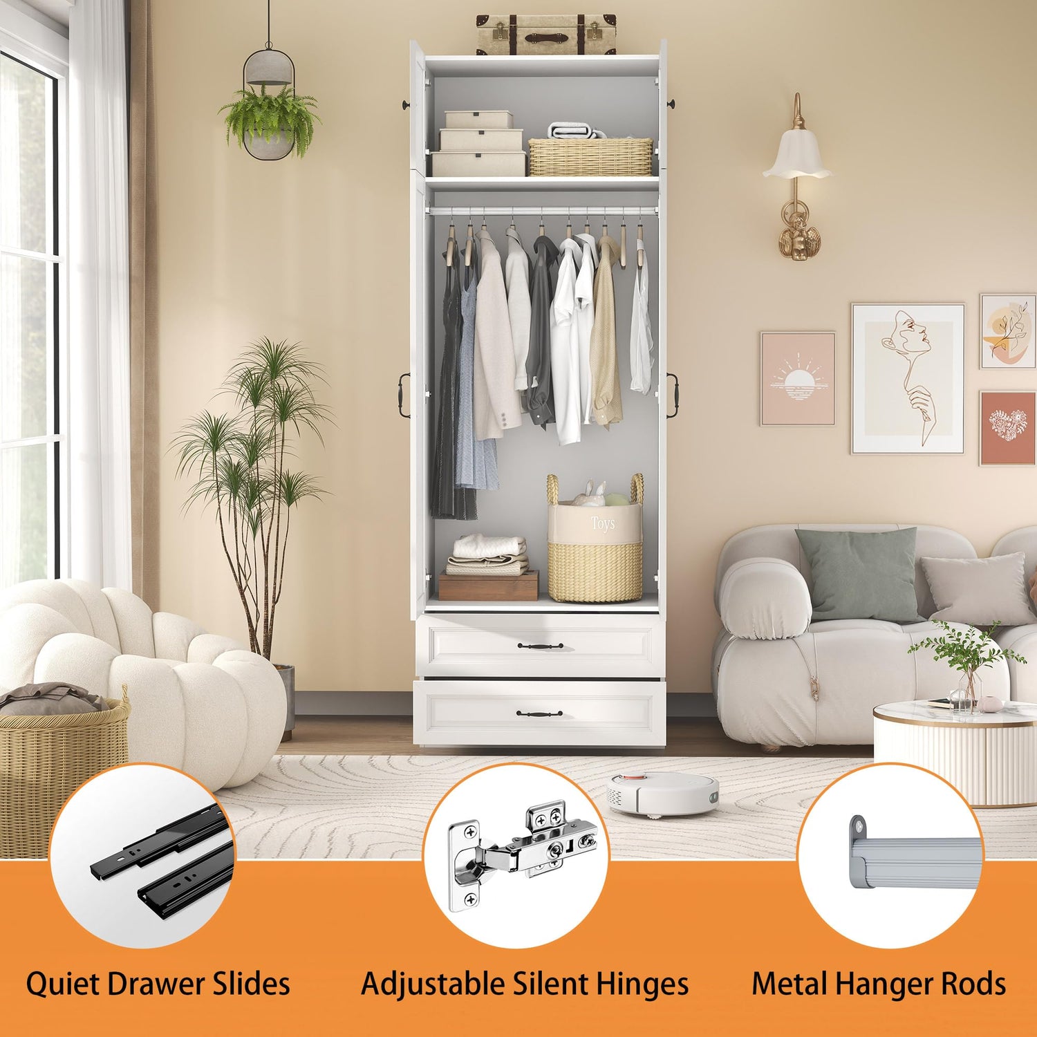 Mhsatyrs Armoire Wardrobe Closet with 2 Drawers: 88" White Bedroom Closet, Wood Wardrobe Closets with 2 Doors, Tall Armoire Cabinet and Storage Shelves for Clothing (31")