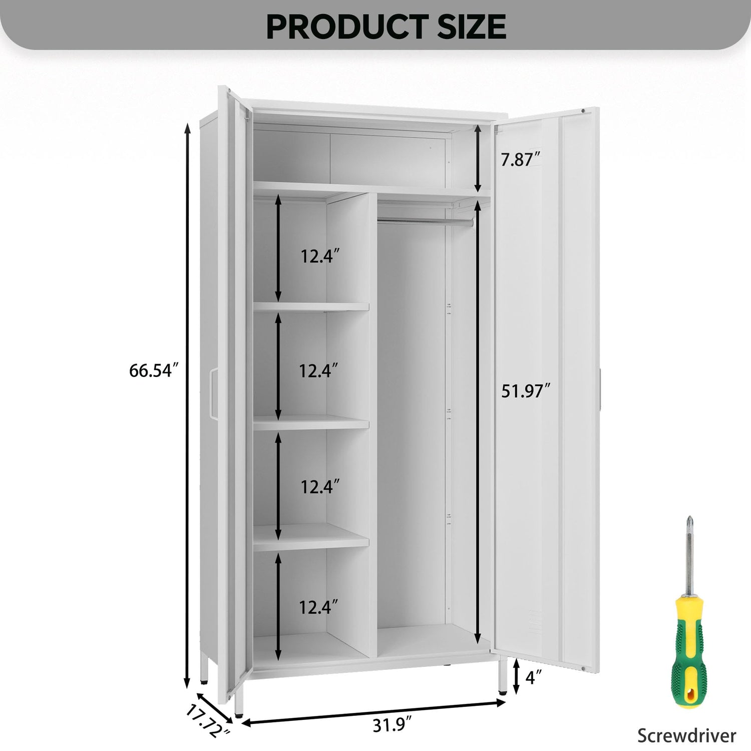 - LARGER STORAGE SPACE: This wardrobe closet offers a storage capacity of 31.89"W x 17.72"D x 66.54"H. This Armoire Closet has 1 Hanging Rod and 4 Shelves, which provide greater flexibility to meet your needs.