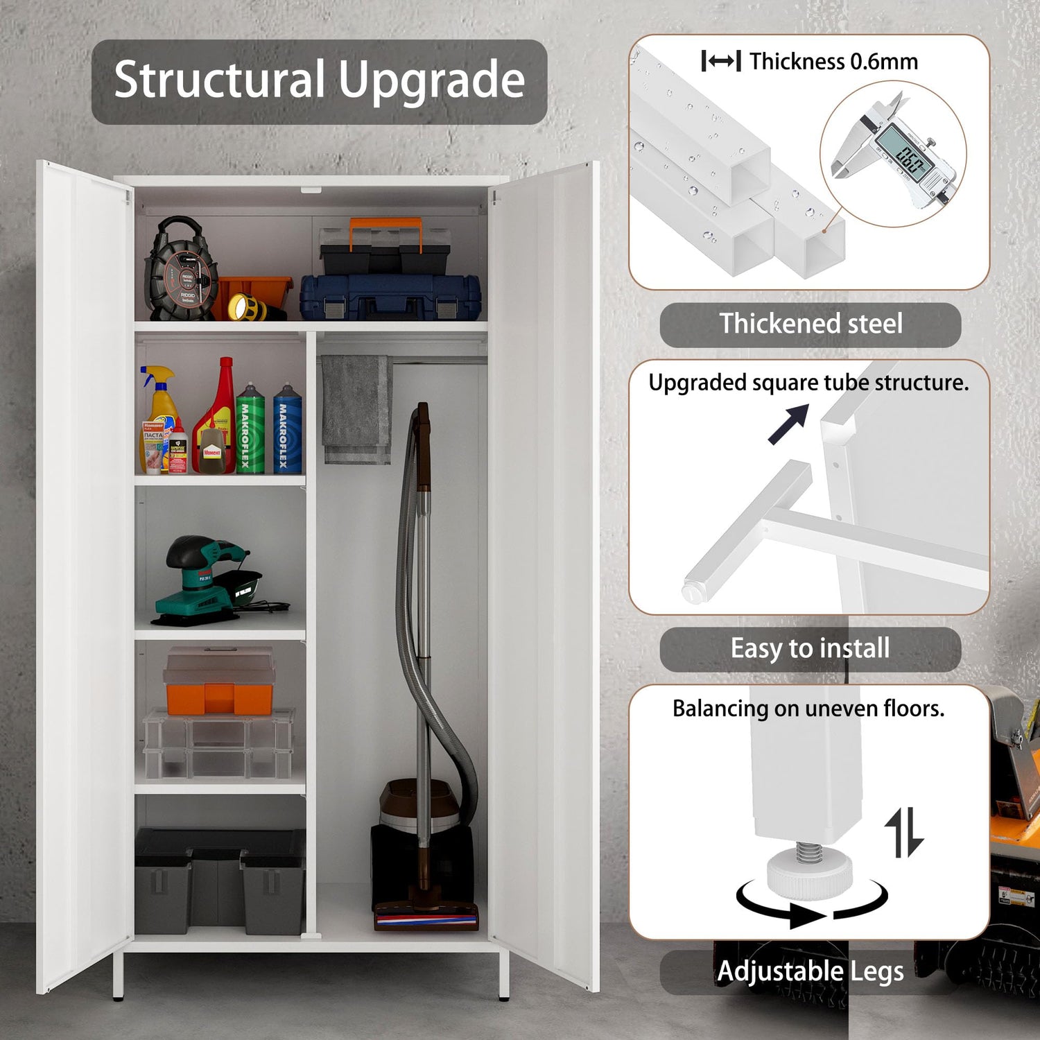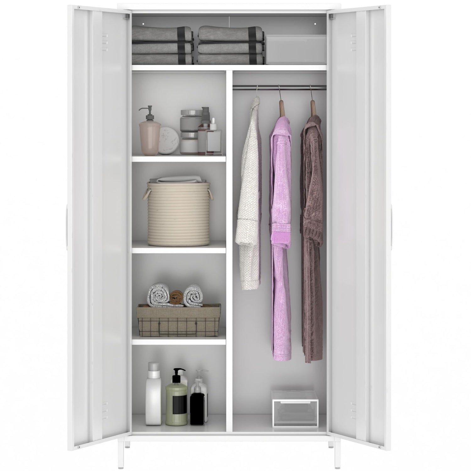 MIOCASA Metal Armoire, Wardrobe Closet Cabinet with 1 Hanging Rod and 4 Shelves Steel Storage Locker Clothes Organizer for Bedroom, Changing Room, Laundry Room, Office - White