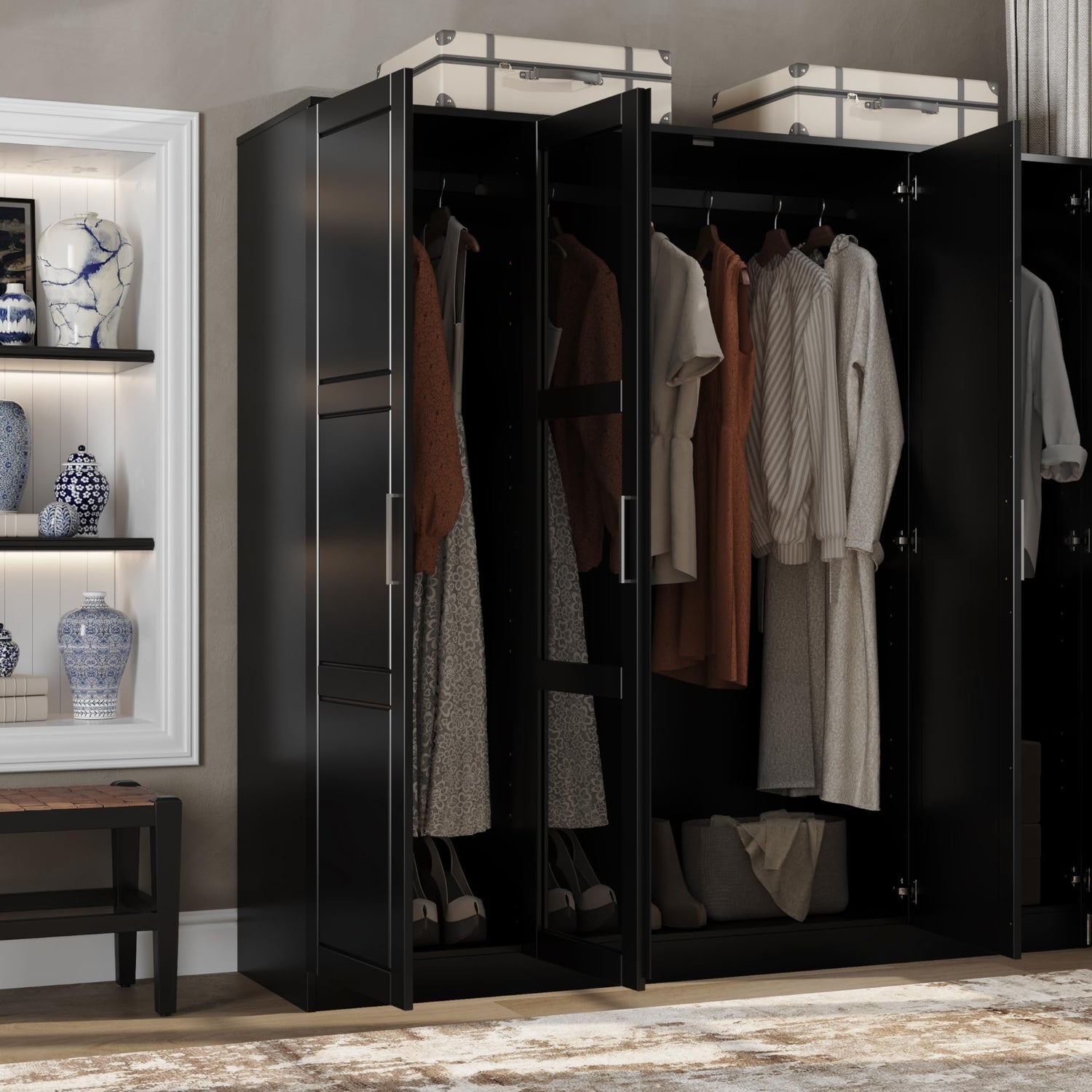 Details: The Cosmo Wardrobe Armoire with raised panel and mirrored doors is the ultimate solution for your storage needs. With its modern style and solid wood construction, it offers ample space and customization with up to ten shelves available. The raised panel and mirrored doors on soft-closing metal Euro concealed hinges add a touch of luxury, while the easy-to-assemble numbered parts make for a fun family project.