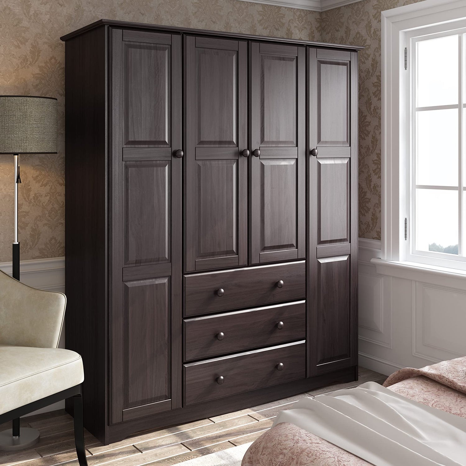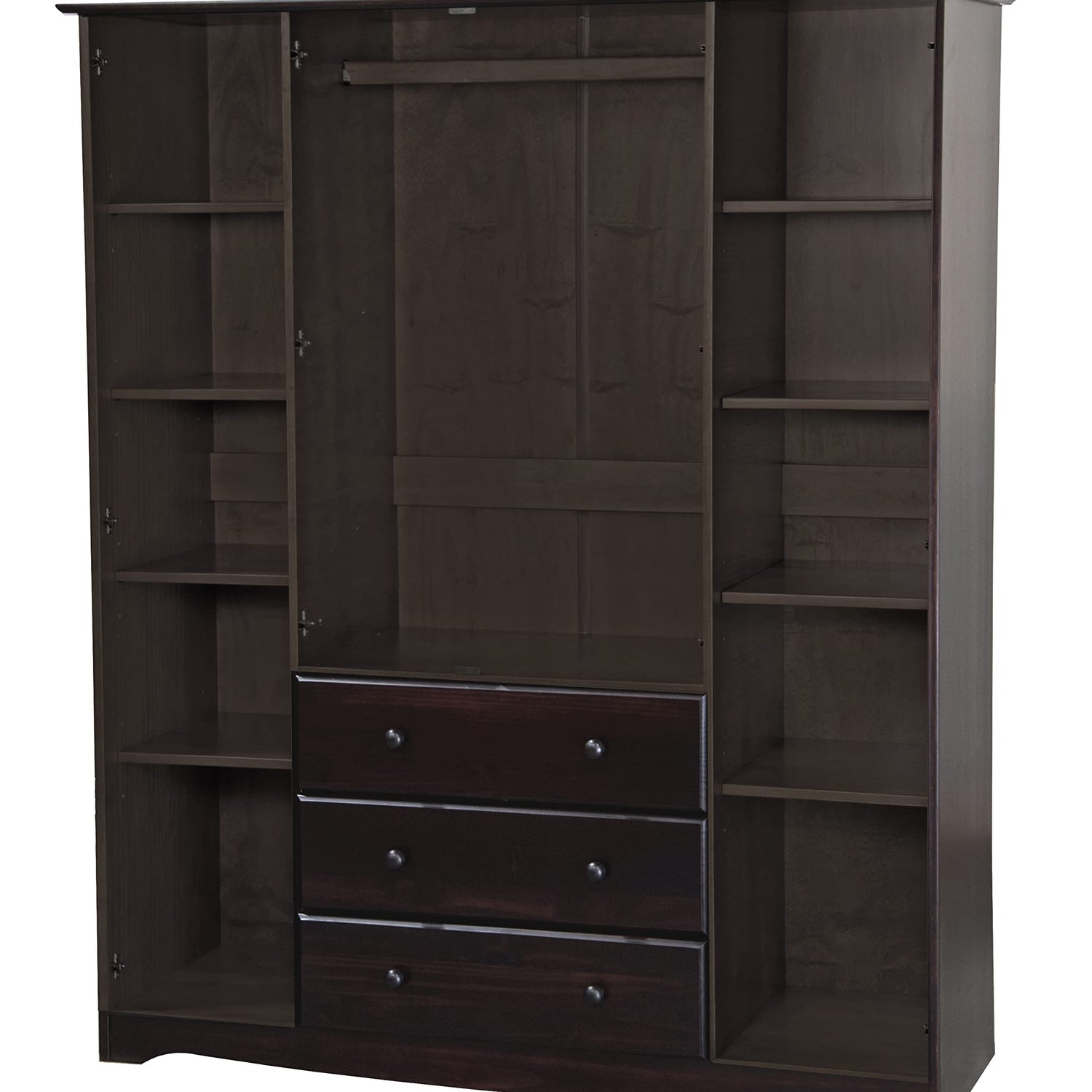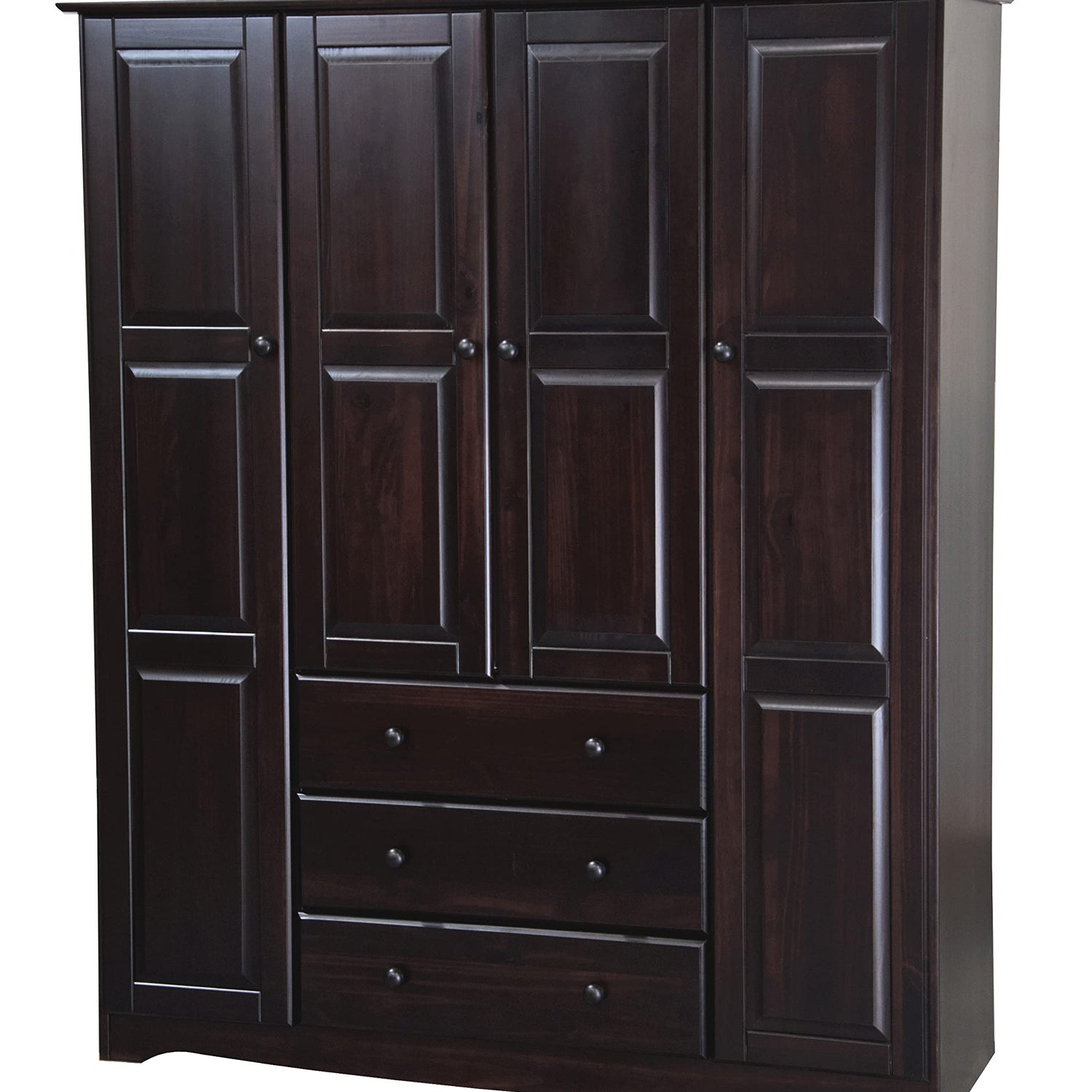 Palace Imports 100% Solid Wood Family Wardrobe Closet Armoire, Java, 3 Clothing Rods Included, 60.25" w x 72" h x 20.75" d, Renewable Eco-Friendly Wood, Made in Brazil
