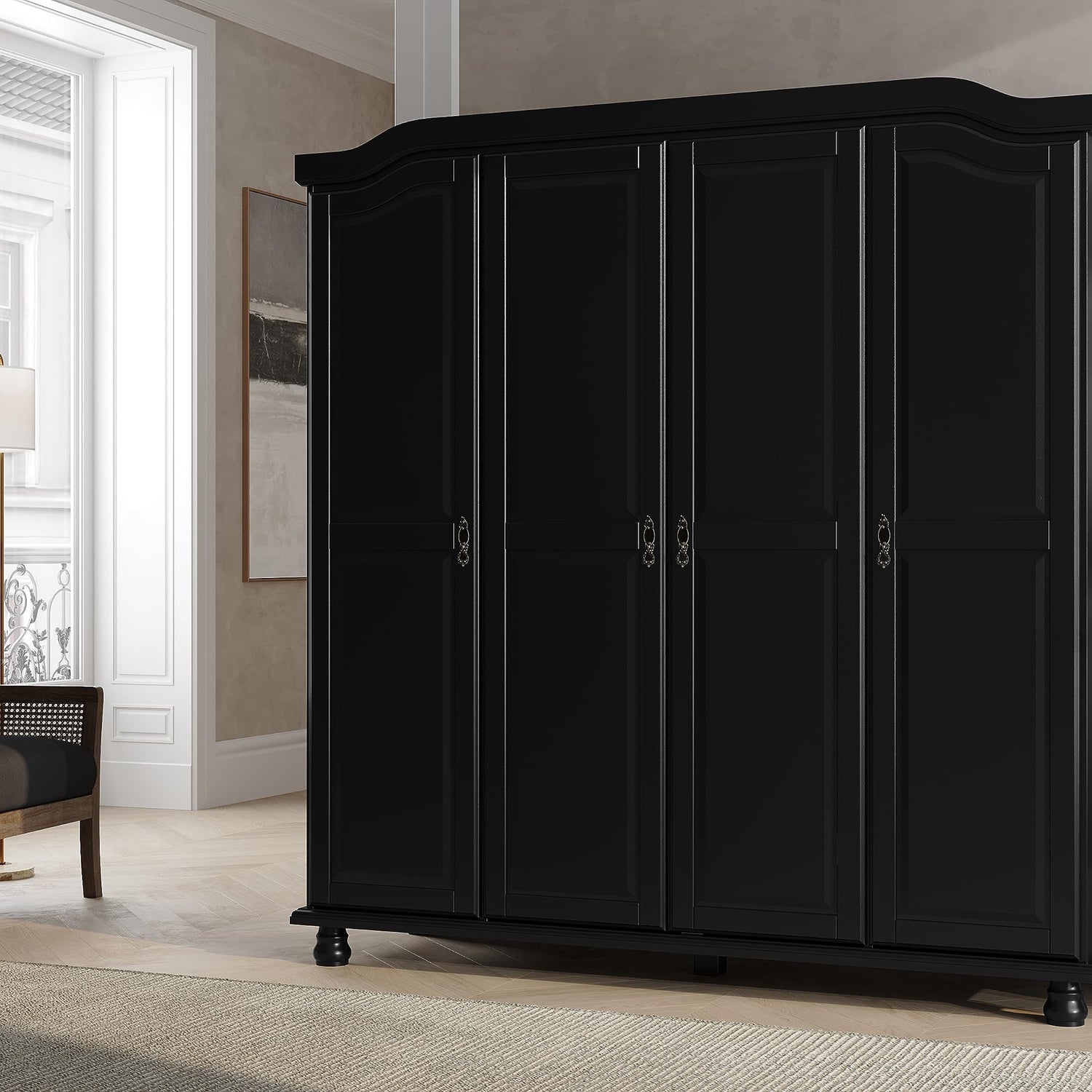 Palace Imports 100% Solid Wood Kyle 4-Door Armoire Wardrobe Closet, Black, 72.25" w x 76.5" h x 22.25" d, Renewable Eco-Friendly Wood, Made in Brazil