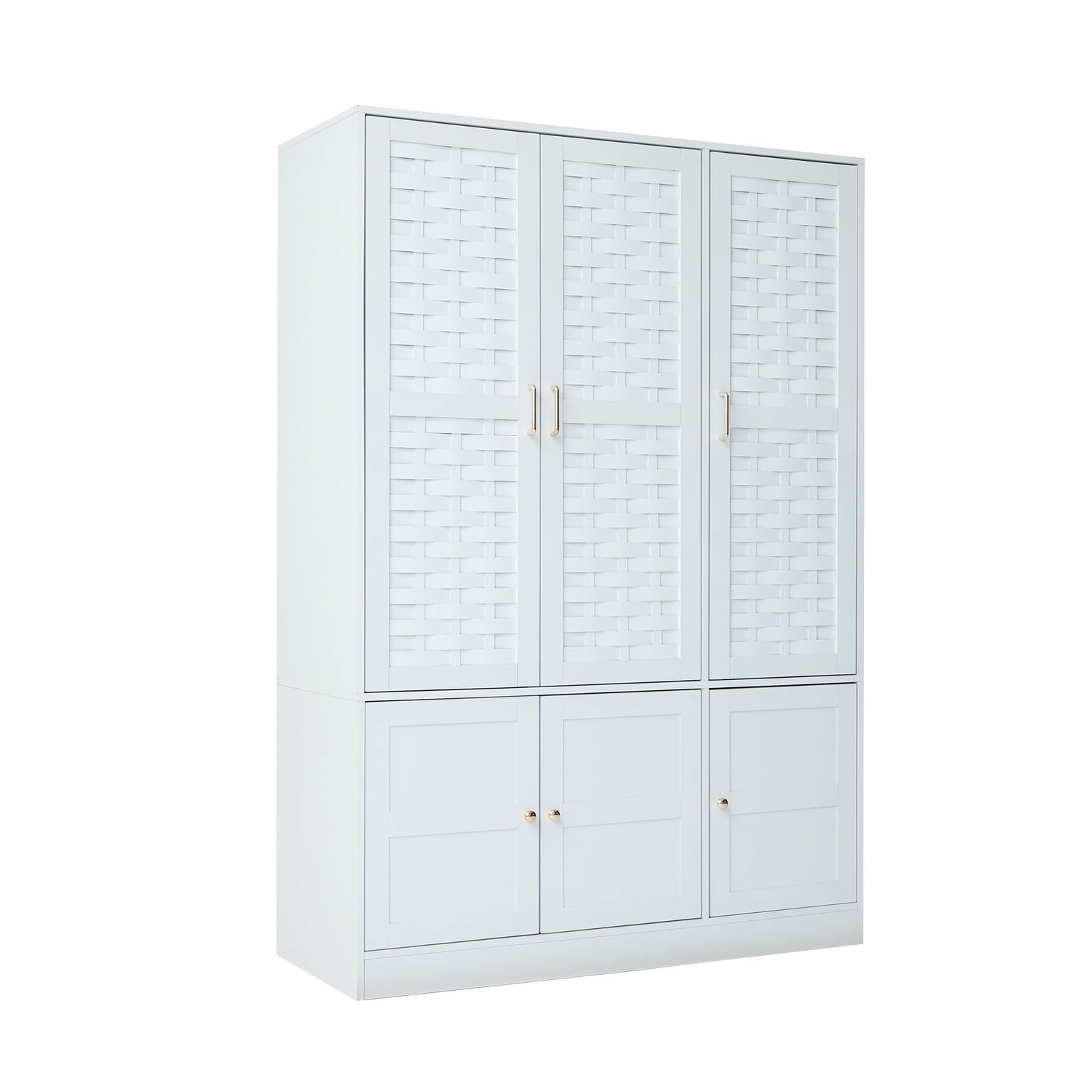PHOYAL Armoire Wardrobe, 6 Woven Doors Storage Cabinet Wood and 8 Shelves Metal Handles for Tall Cabinet Closet Large Capacity Armoire Wardrobe Closet with Hanging Rod (White)