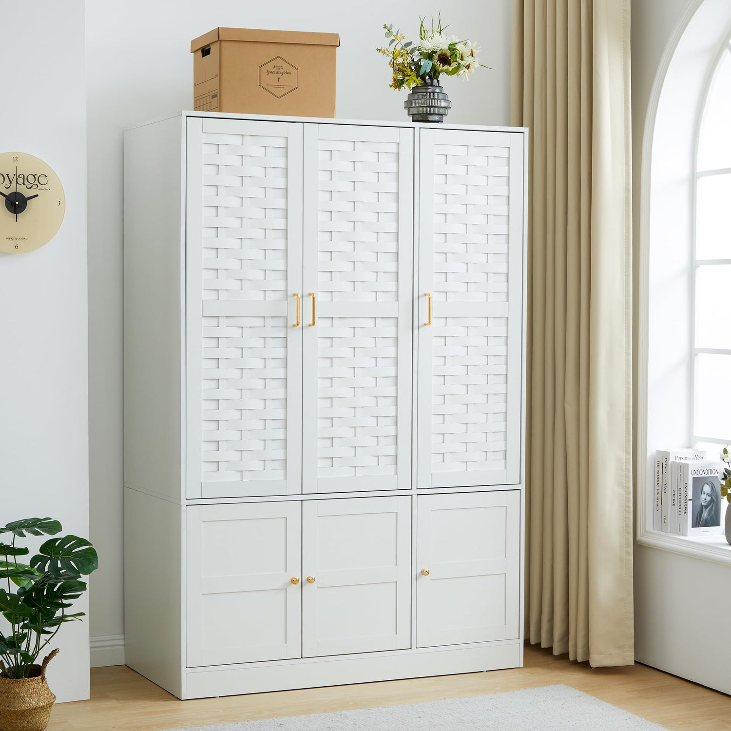 - 【 Modern Design】The metal handles add a classy beauty for this 6 -door wardrobe closet. Pure white color with fine texture on the surface, sleek stream-line and simple construction make it perfectly suit most of bedroom themes.