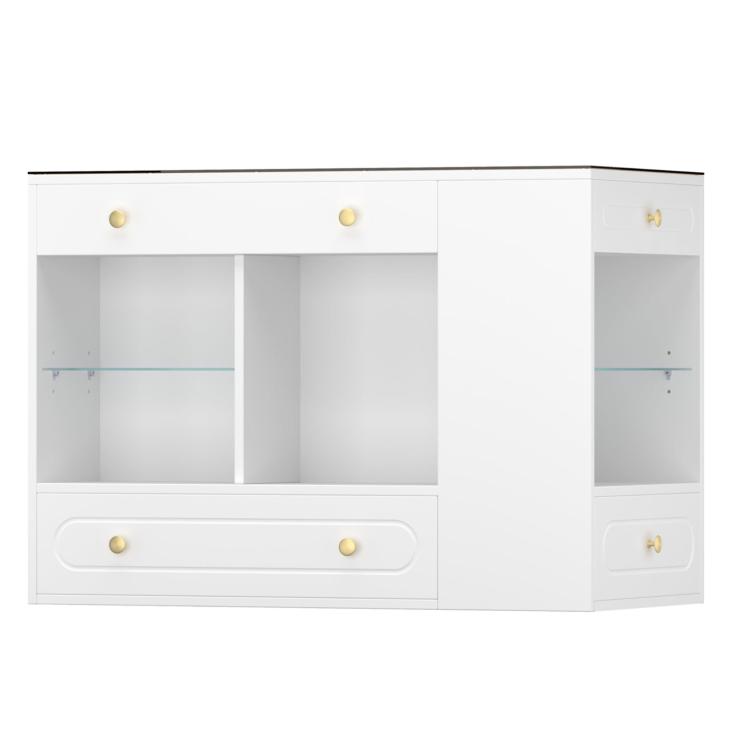 Polibi Walk-in Closet Island Organizer with 6 Drawers, Tempered Glass Display Top & 3-Side Open Shelves - Jewelry Vanity Storage Cabinet - Bedroom Wardrobe Center - MDF/Particle Board,White